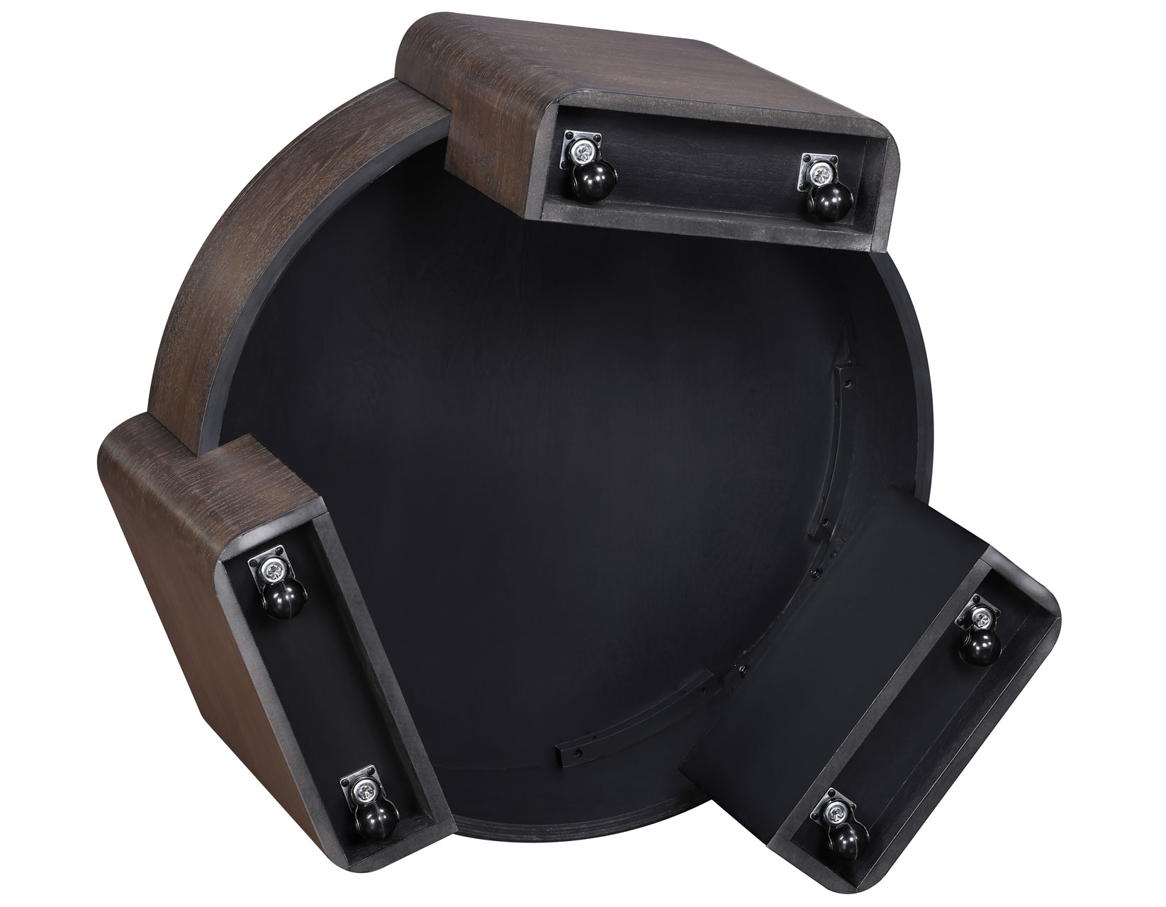 Modernly elegant with flowing round shapes, the Salina 3-Piece Table Set completes any room with stunning table accents. Crafted from oak veneers and solid Asian hardwoods in a warm espresso finish, the set includes a 32.5″ round coffee table with hidden casters and two matching end tables. The coffee table’s smooth top and built-in mobility let you whisk it out of the way effortlessly when needed. Each end table features clean lines and a lower shelf for display or storage. Sleek and versatile, Salina suits any modern or transitional space.