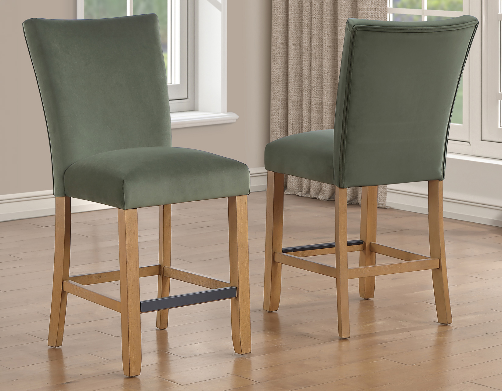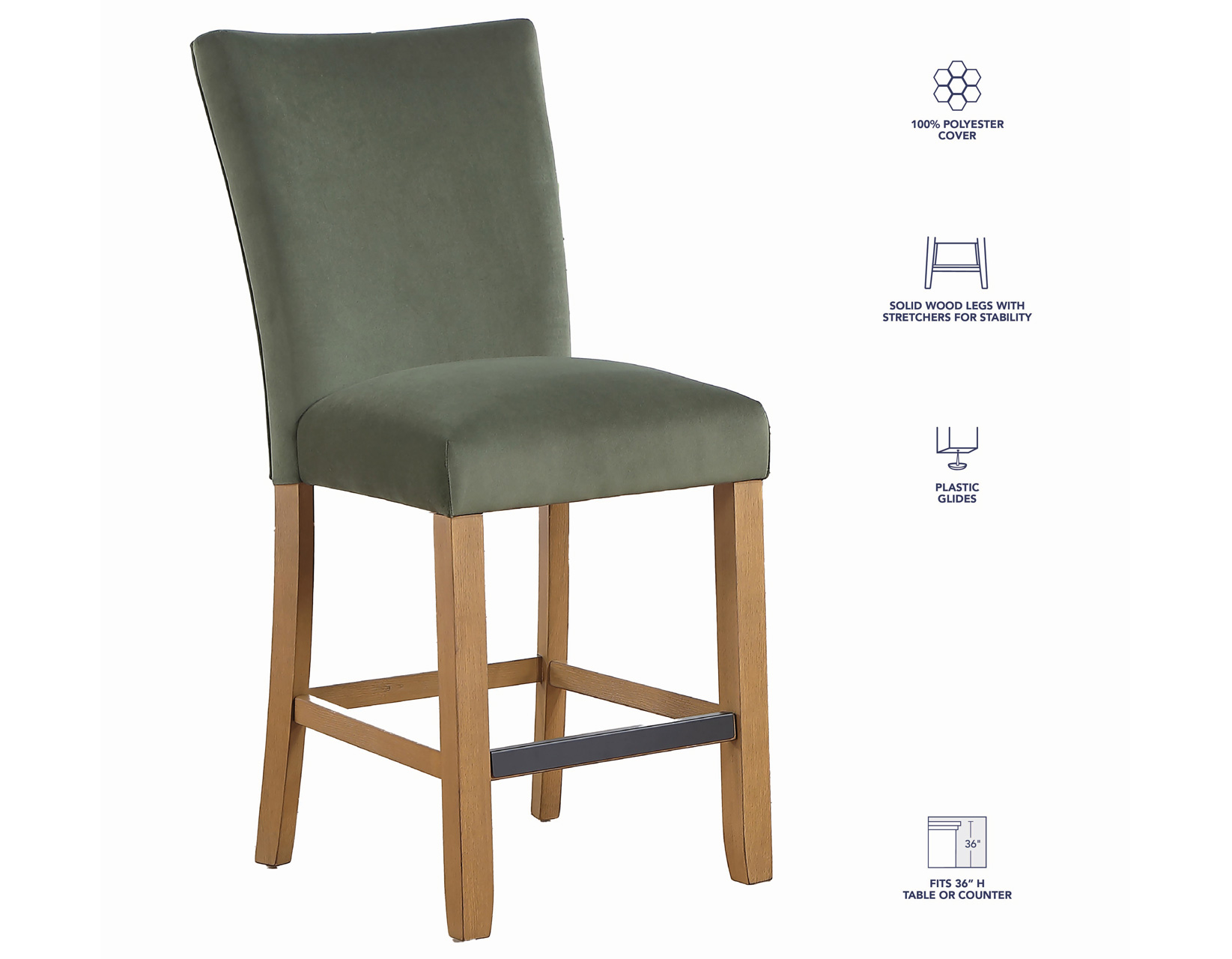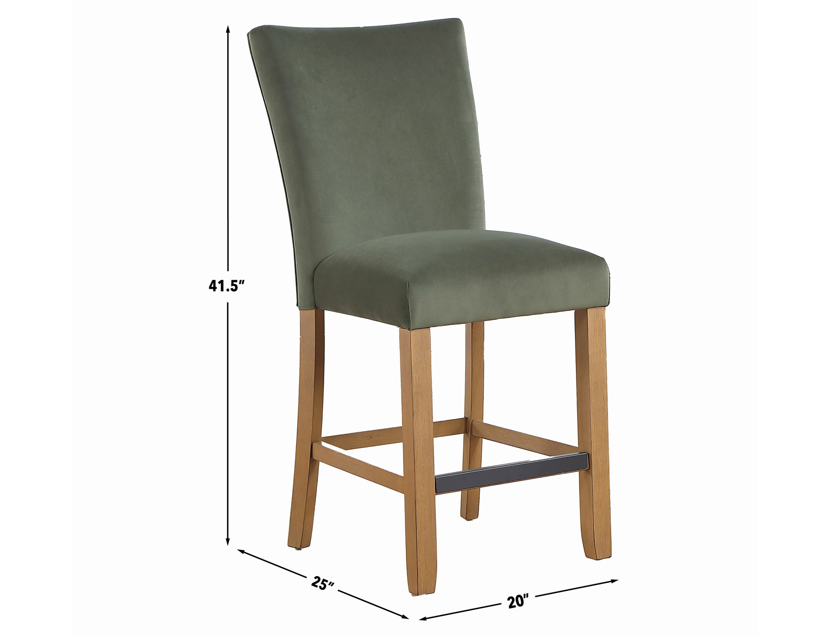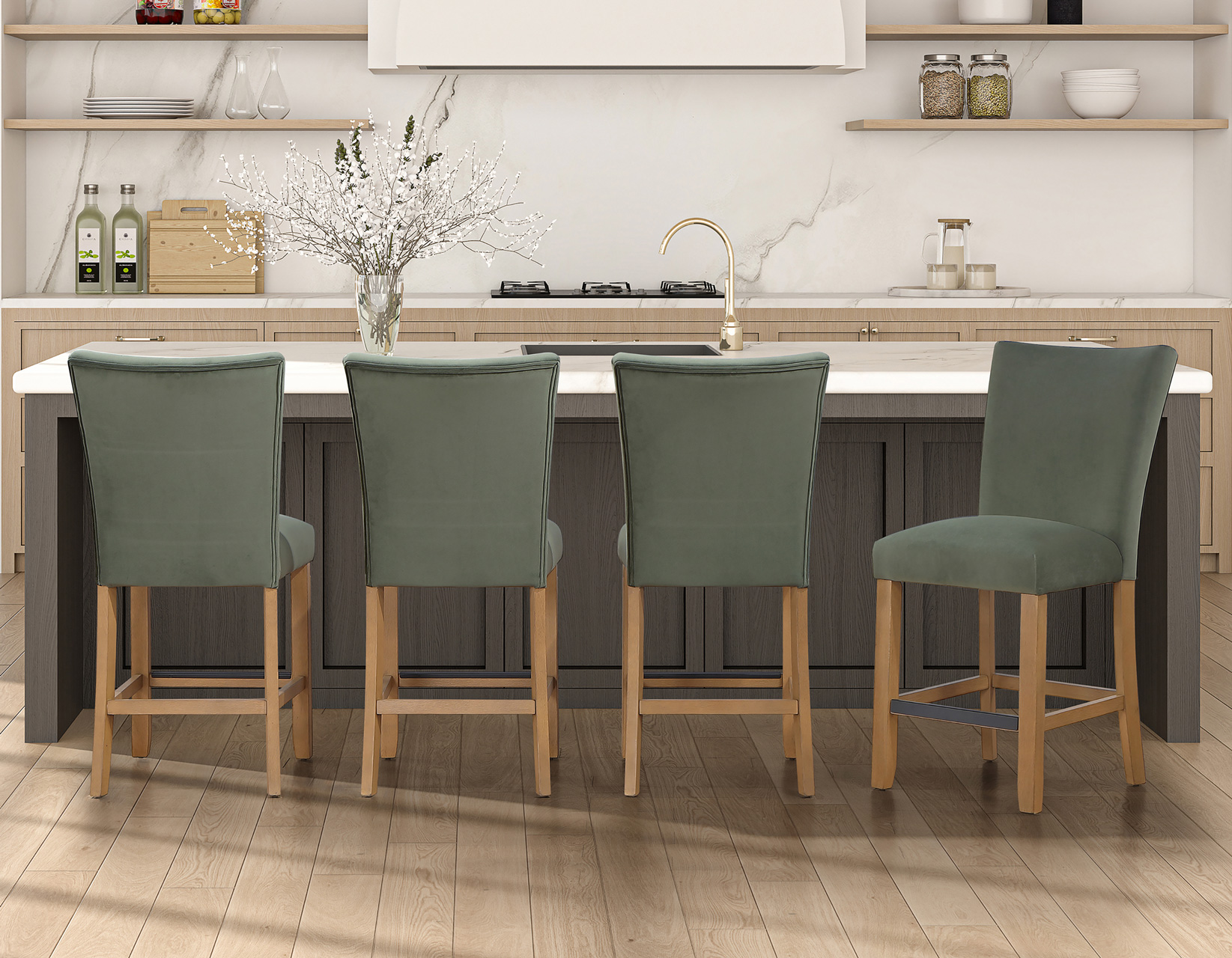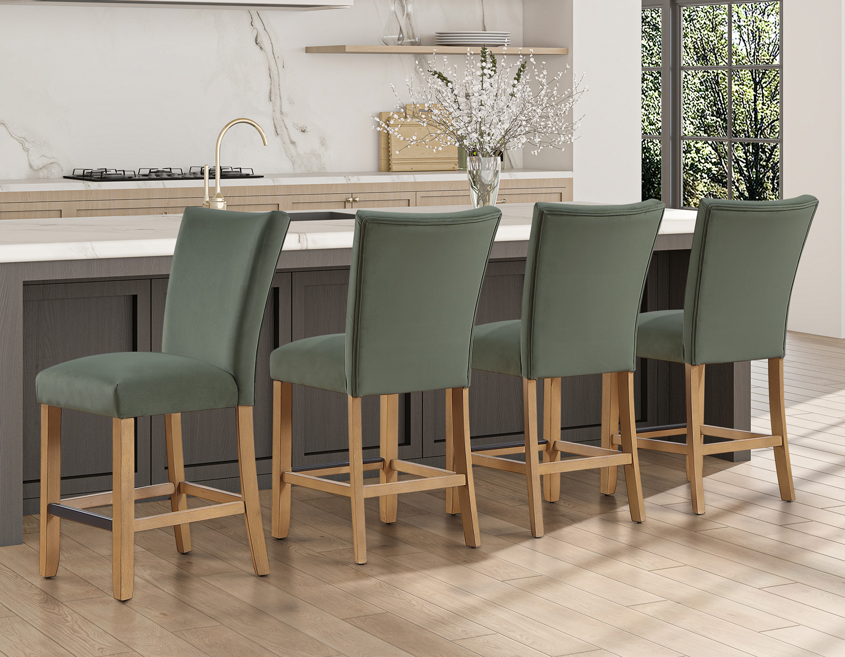 - Available in green velvet, brown velvet, brown chenille, gray chenille, white vegan leather and black vegan leather; in counter and dining height sizes