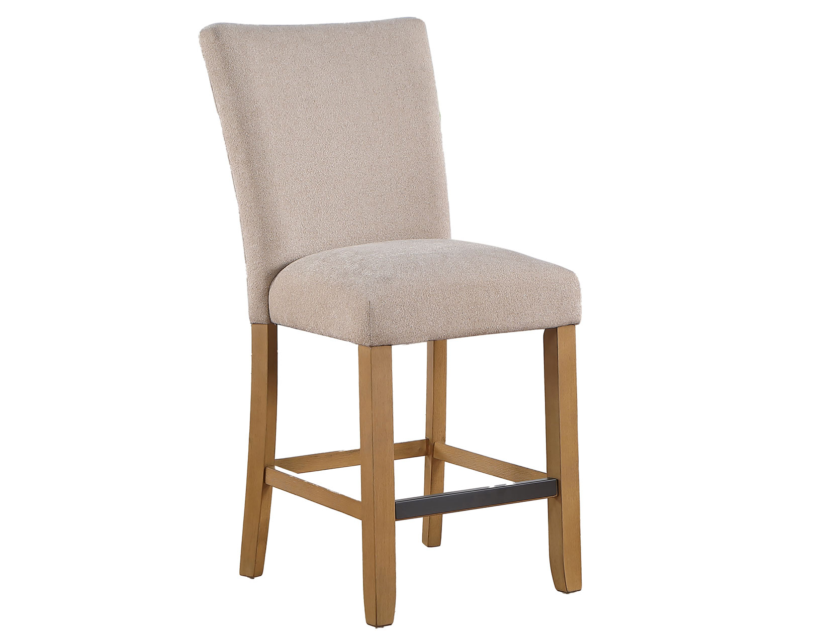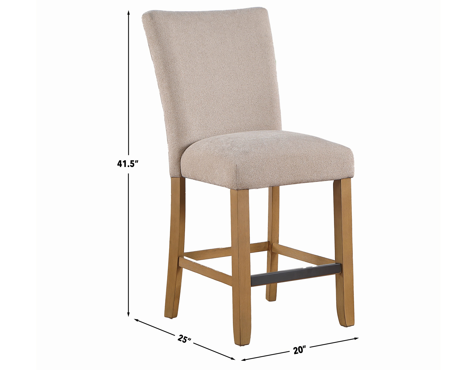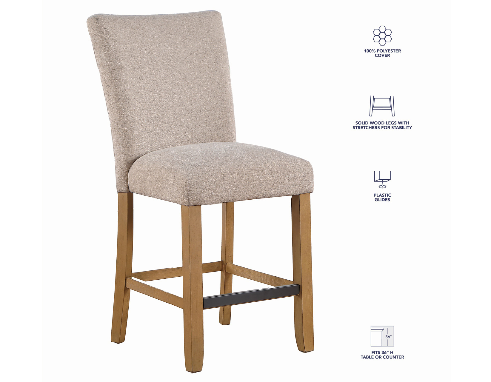 - The counter chair’s soft beige chenille, crafted from 100% polyester, ensures plush comfort and a luxurious dining experience