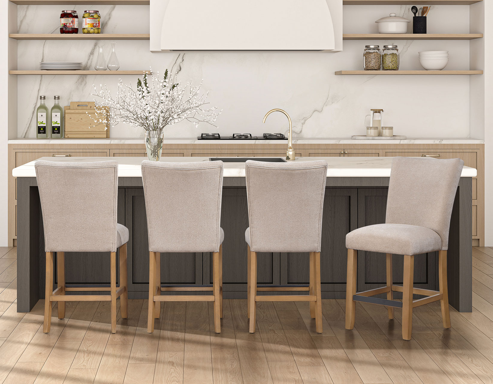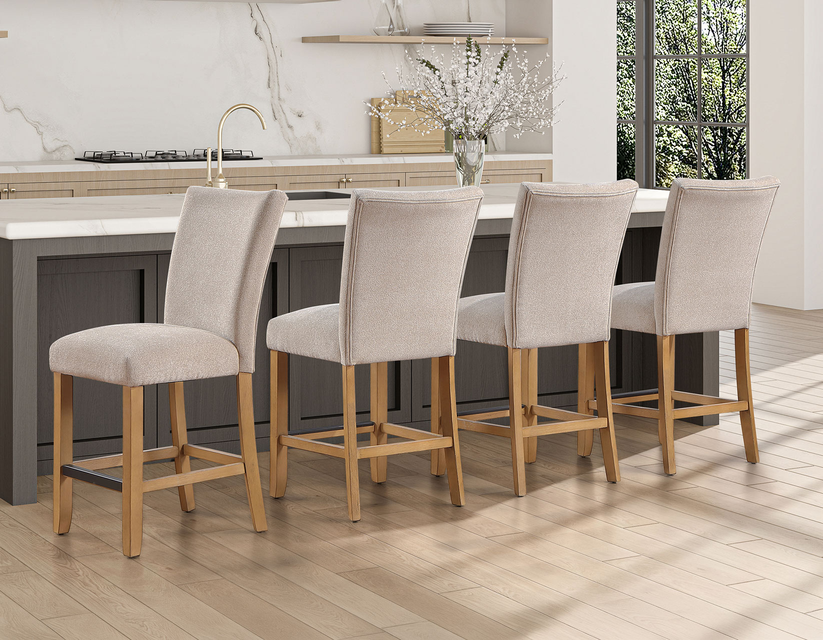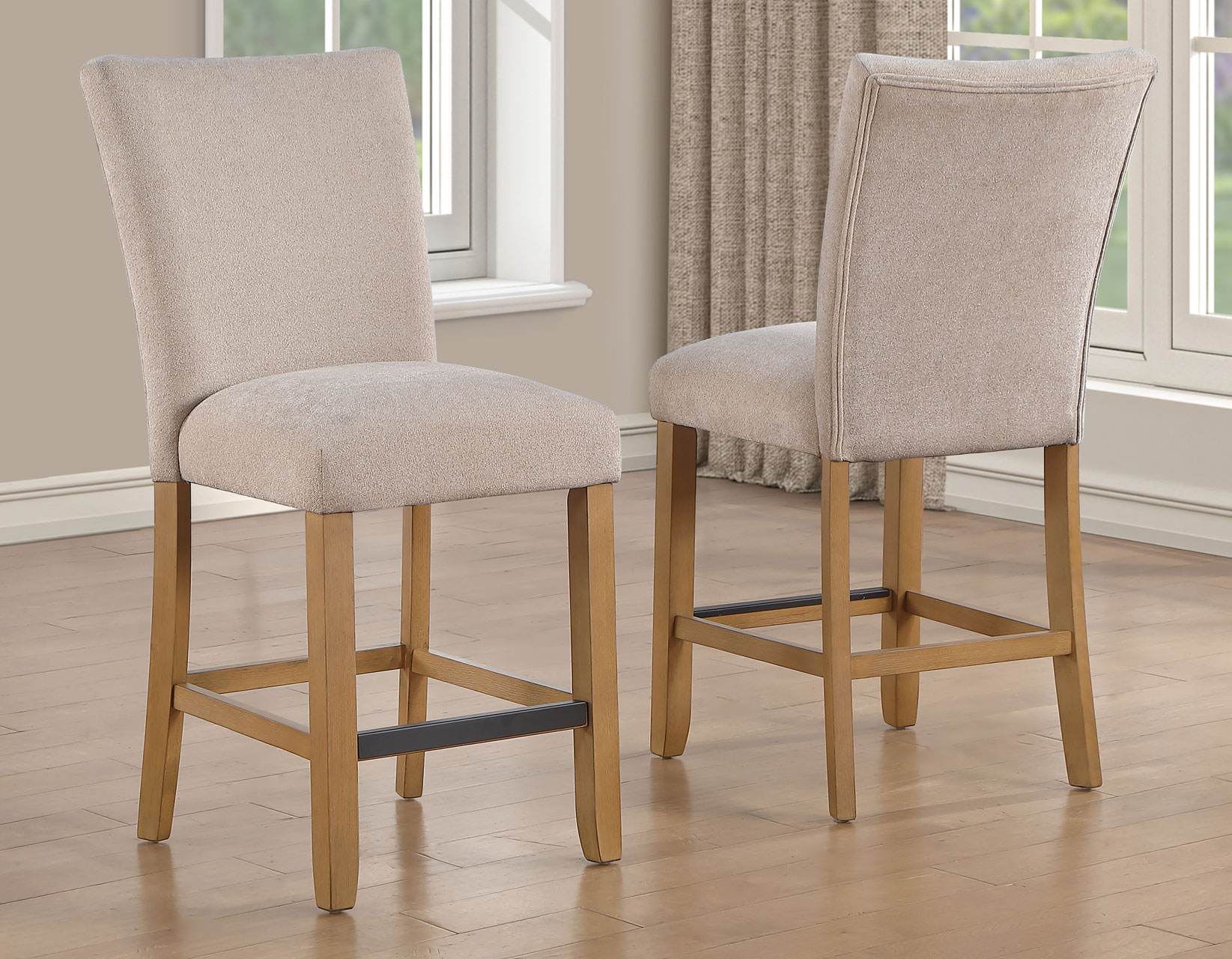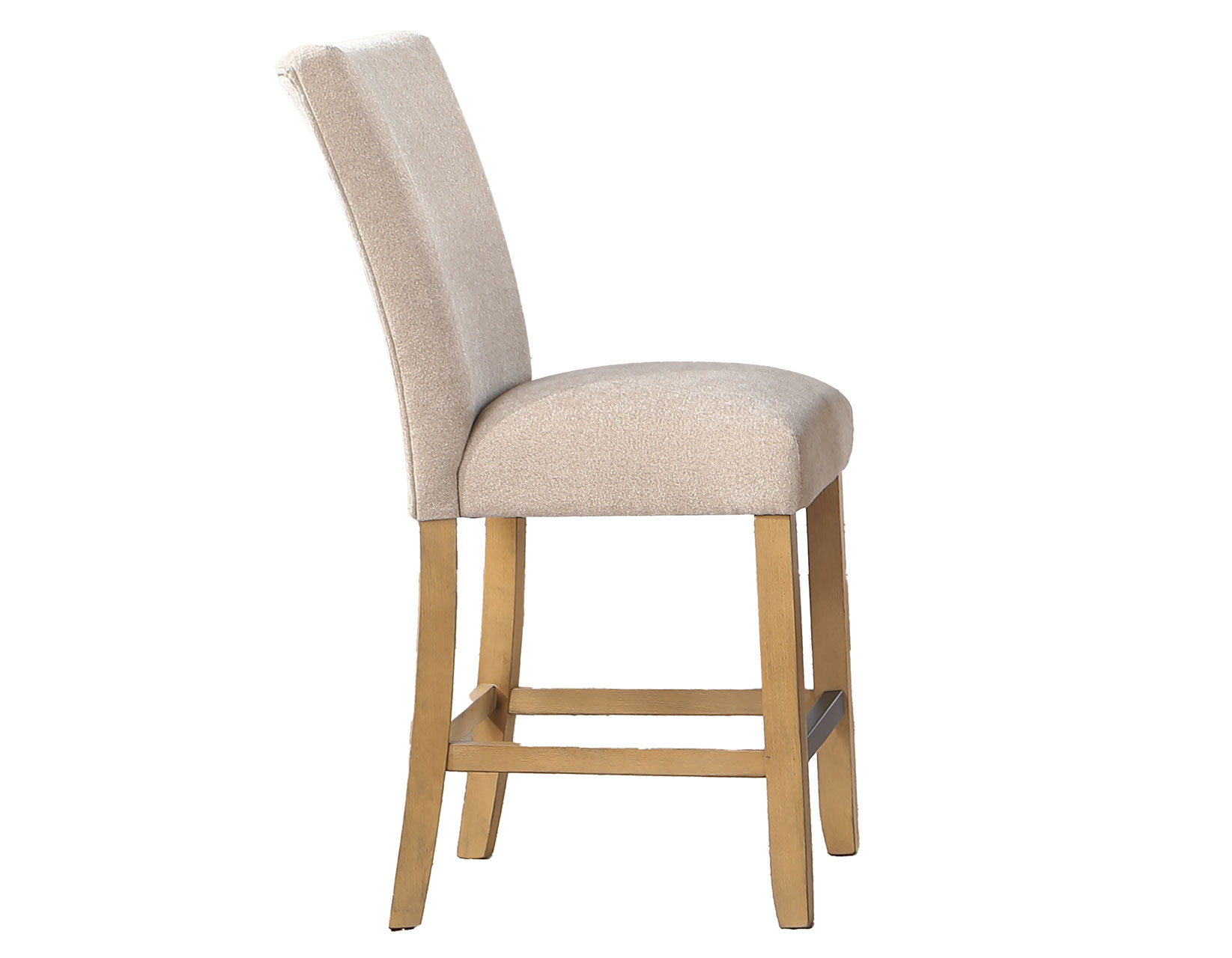 - The counter chair’s soft beige chenille, crafted from 100% polyester, ensures plush comfort and a luxurious dining experience
