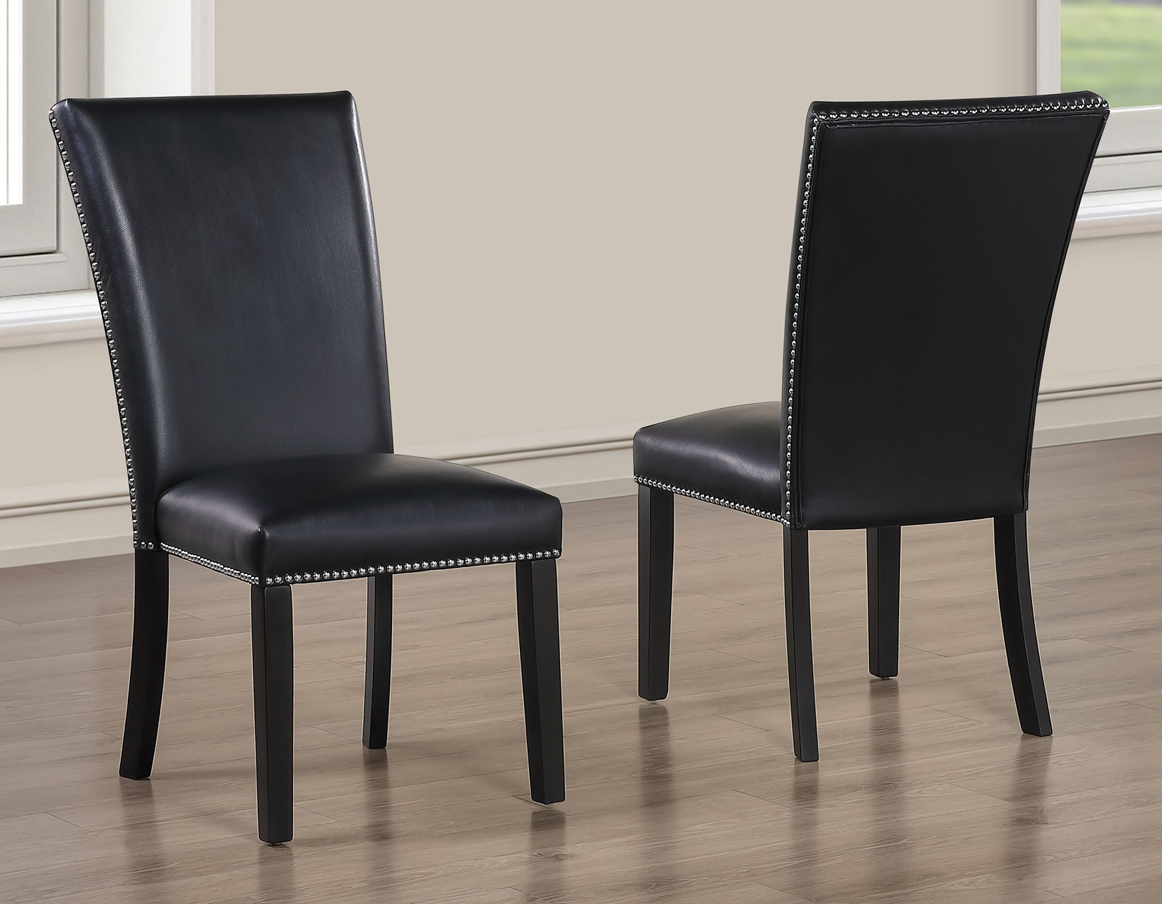 - The chair’s sleek black vegan leather, made from 100% polyester, offers the look and feel of real leather with easy-care convenience.