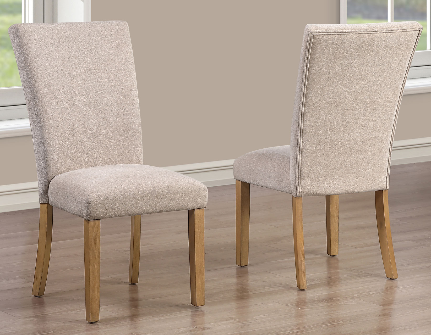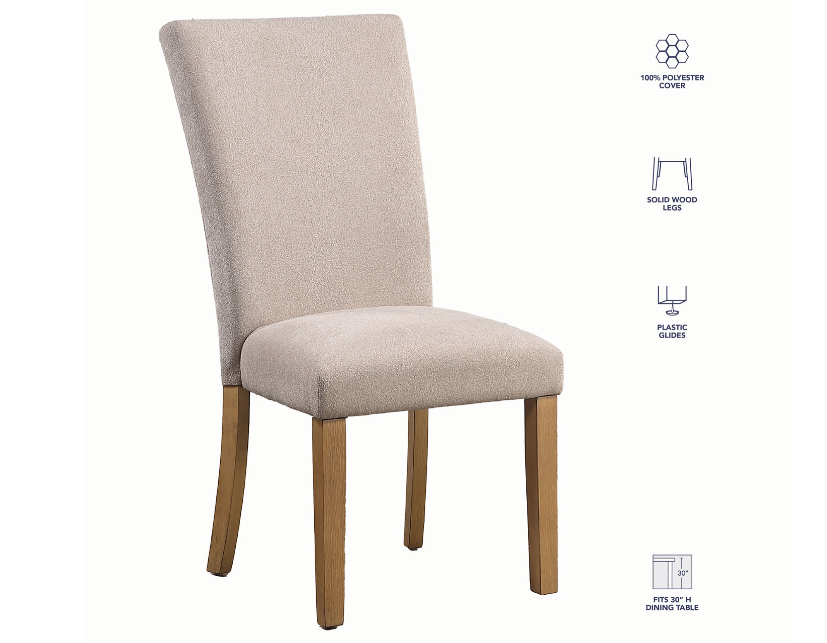 - The chair’s soft beige chenille, crafted from 100% polyester, ensures plush comfort and a luxurious dining experience