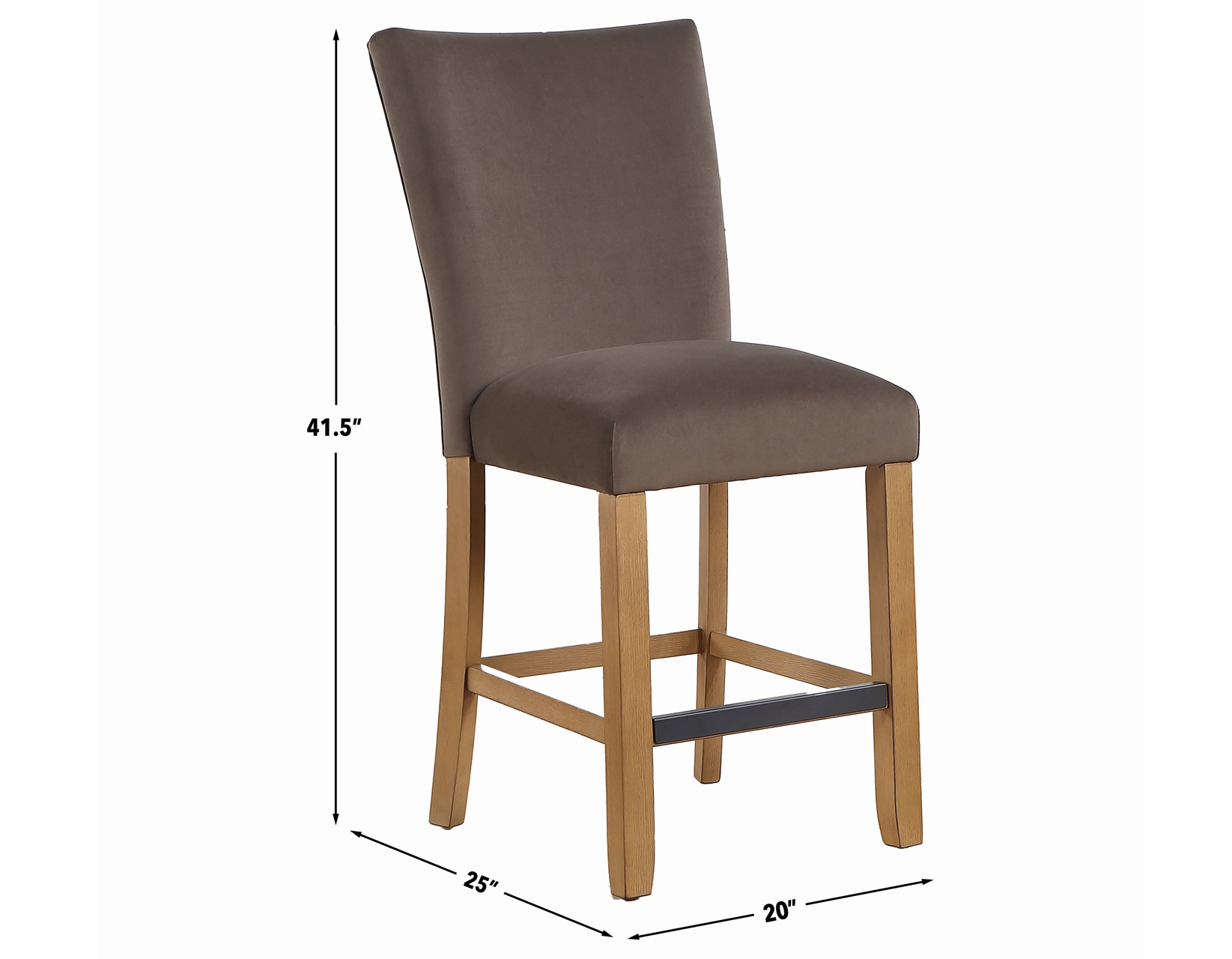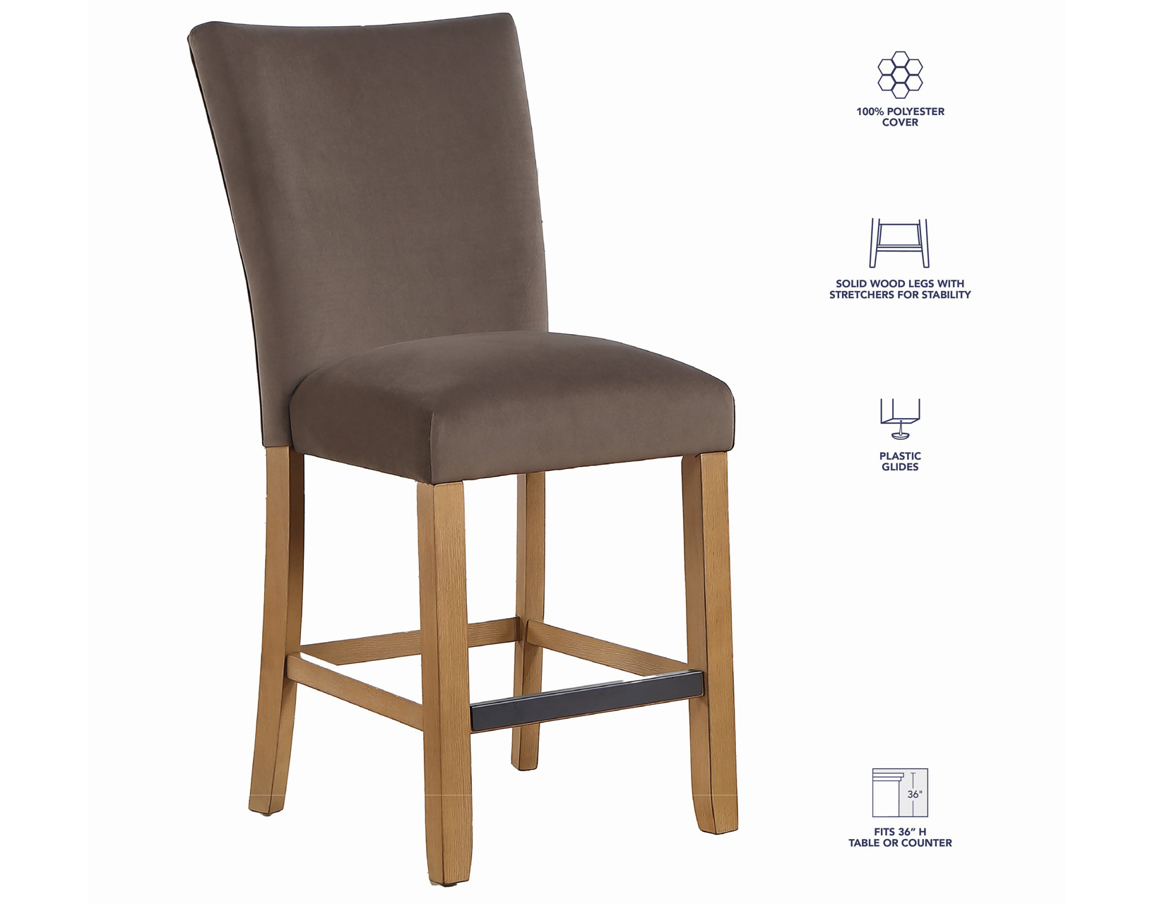 - Front and side stretchers provide sturdy support and stability for the 24″ seat height counter stool
