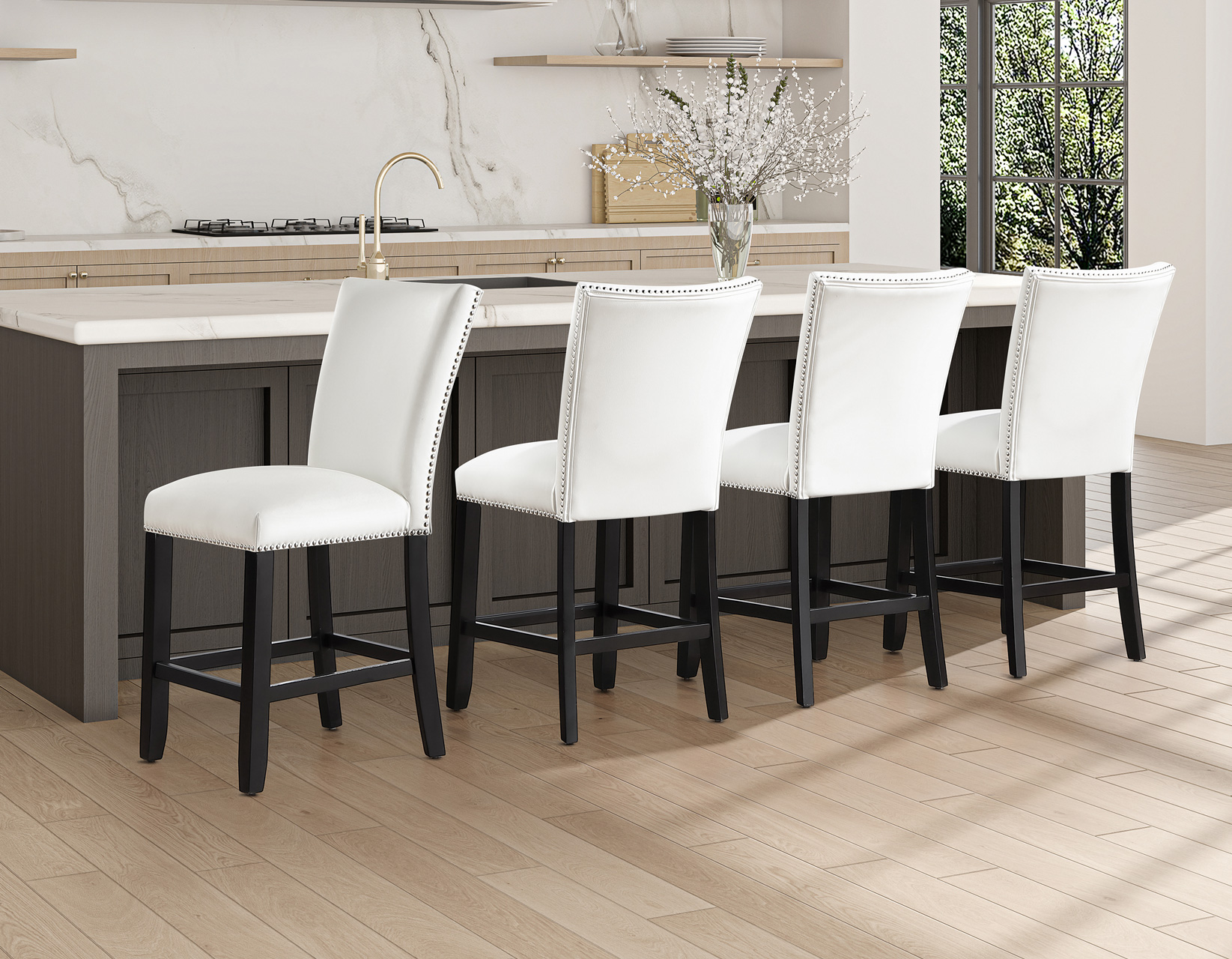 • Available in green velvet, brown velvet, brown chenille, gray chenille, white vegan leather and black vegan leather; in counter and dining height sizes