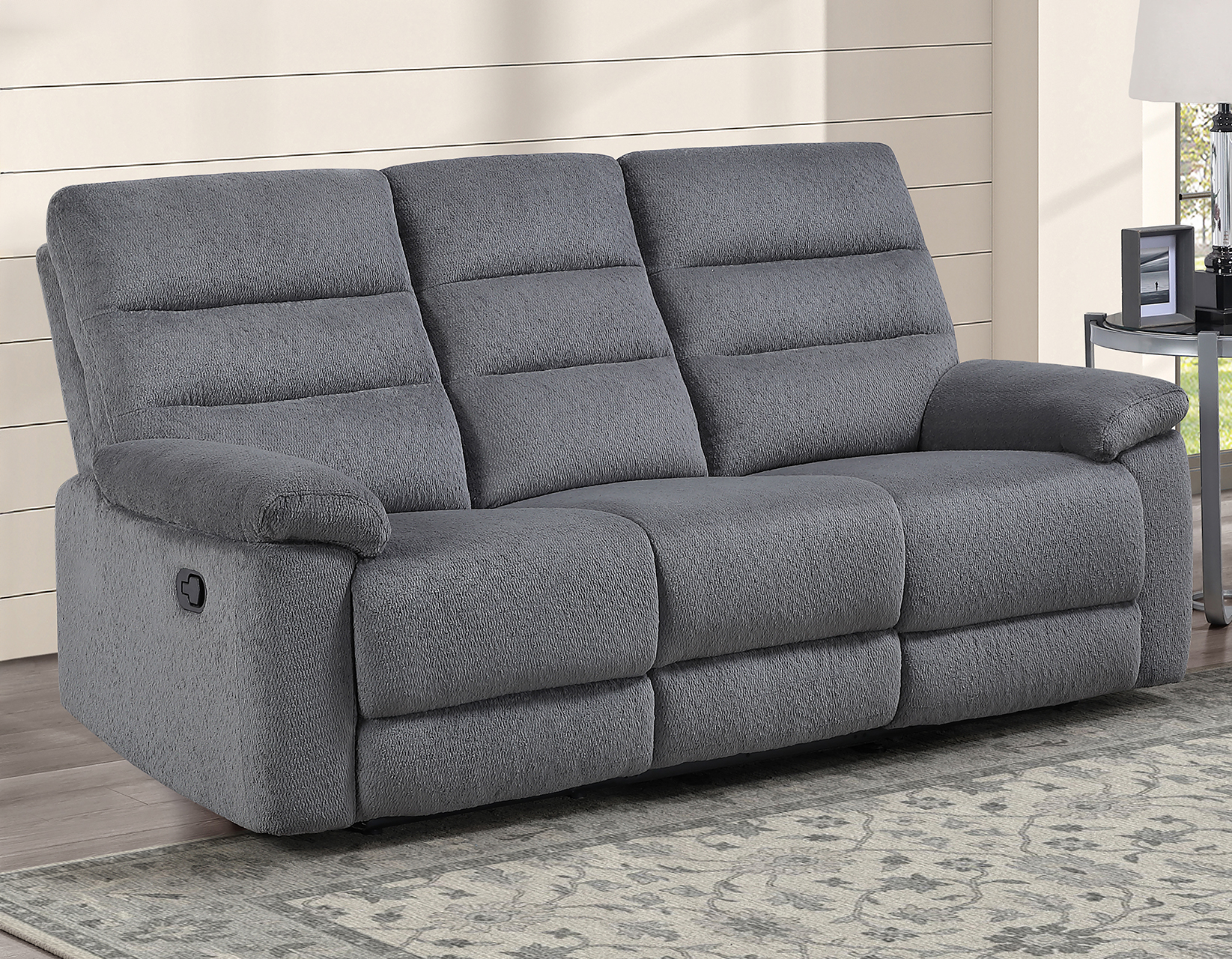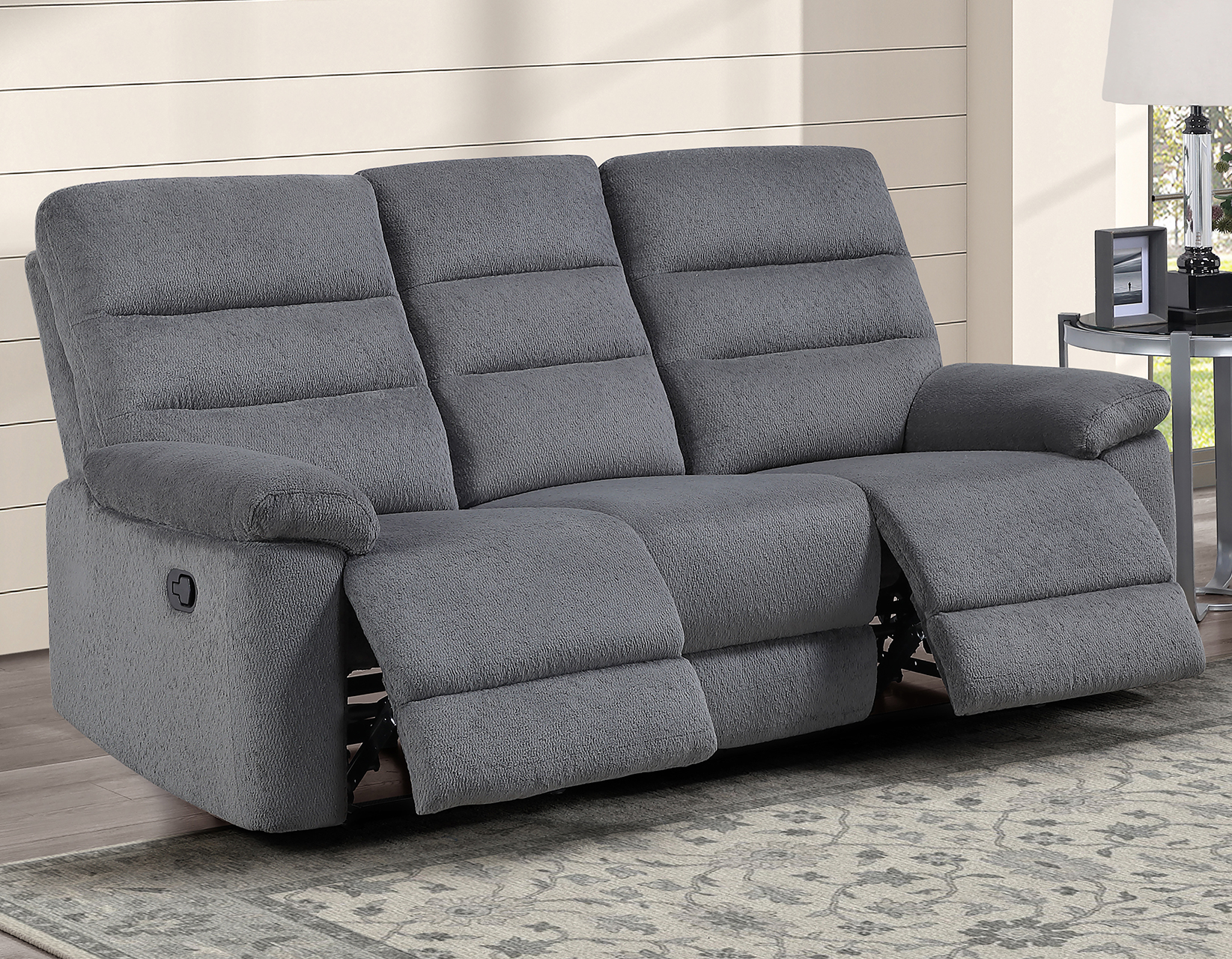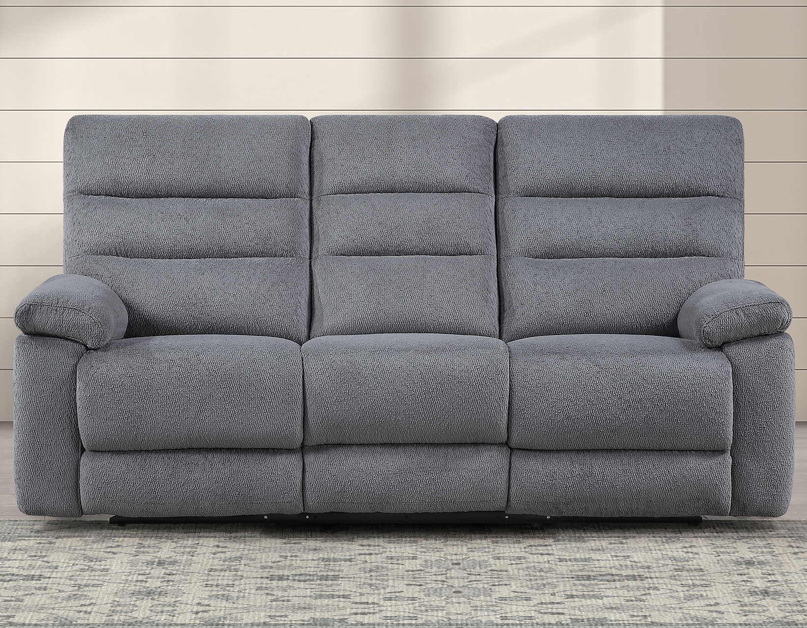 Stretch out in effortless comfort with the Cozy Manual Reclining Sofa. Upholstered in a stylish dolphin gray 100% polyester cover, it offers a soft, inviting feel with stain resistance for easy care. Plush, channeled backs with 2.0-density foam provide sink-in comfort, while generously overstuffed arms add extra support. Dual manual reclining ends activate with a simple pull, smoothly positioning you for optimal relaxation—making the Cozy sofa the perfect choice for everyday lounging and laid-back living.
