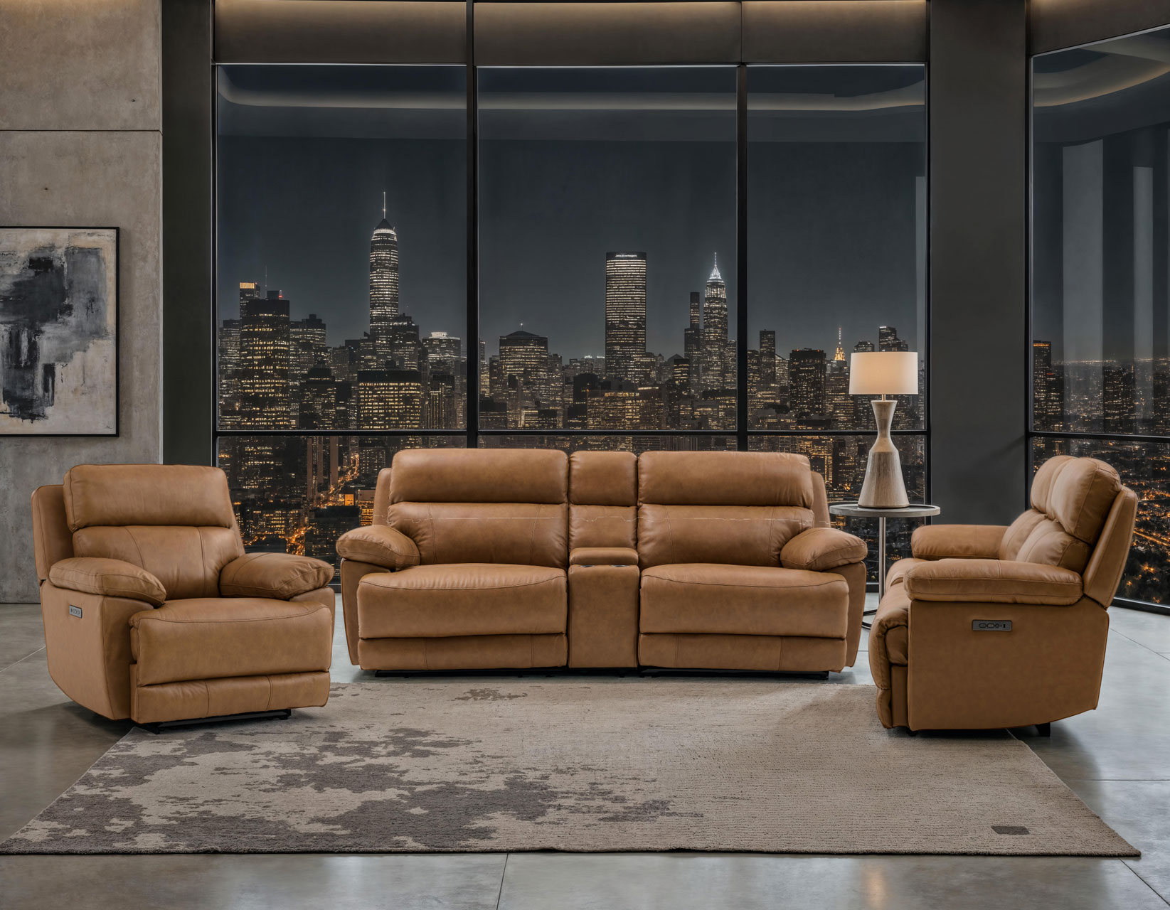 Relax in premium comfort with the Gatlin Leather Dual-Power Reclining 3-Piece Set, featuring a sofa, loveseat, and chair designed for elevated everyday lounging. Upholstered in rich butterscotch leather on all front-facing surfaces, with durable vegan leather on the sides and backs, this set blends luxury and practicality. Plush pillow-top arms and generously wide seating invite you to unwind, while dual-power reclining lets you effortlessly adjust headrests and footrests. Built-in USB charging, supportive bustle backs, 2.0 density foam, sinuous springs, and a sturdy engineered wood frame ensure lasting comfort and reliability.
