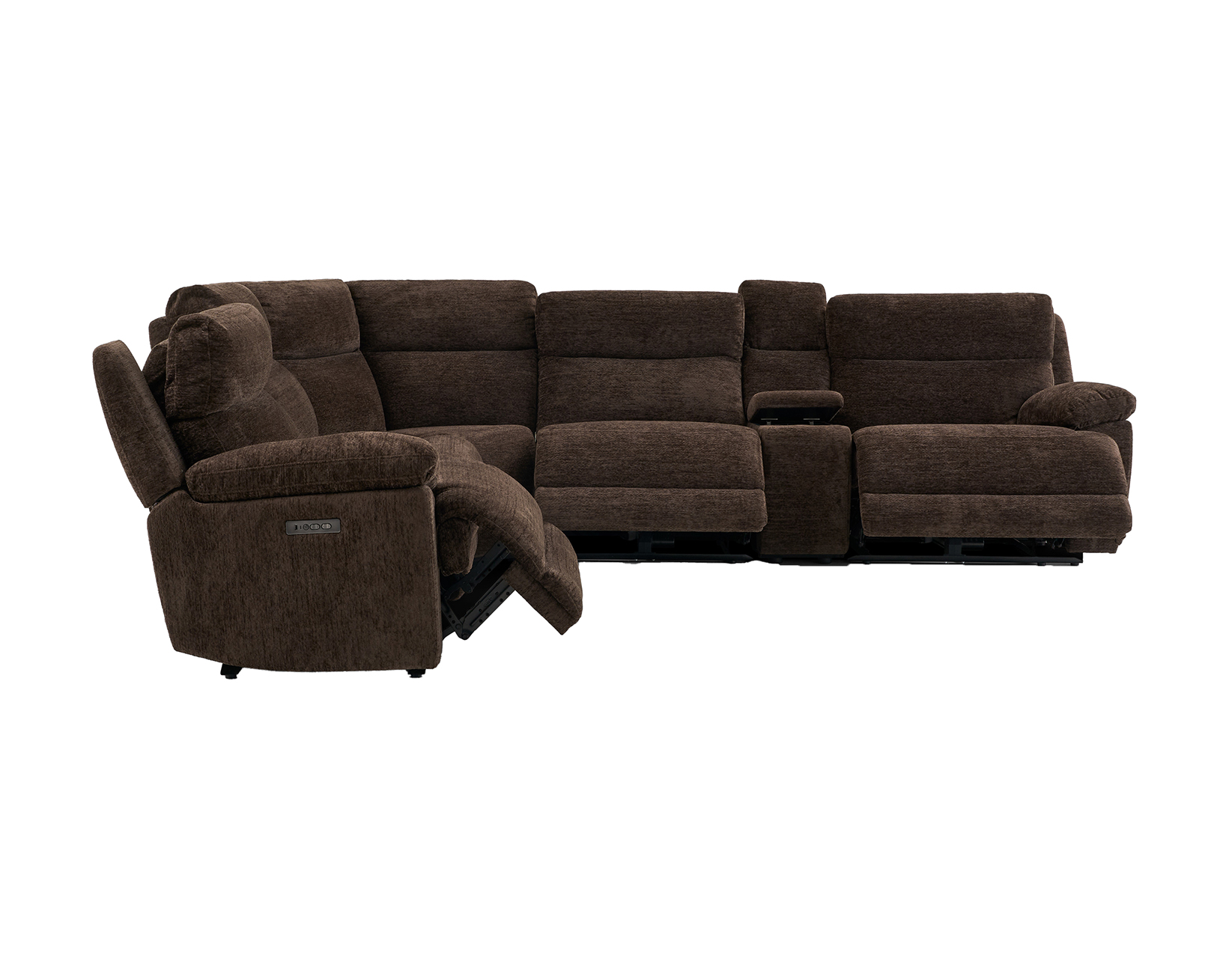 - 6-Piece Set includes the LAF Leather Dual-Power Recliner, RAF Recliner, Power Console, Armless Chair, Armless Recliner and Wedge.