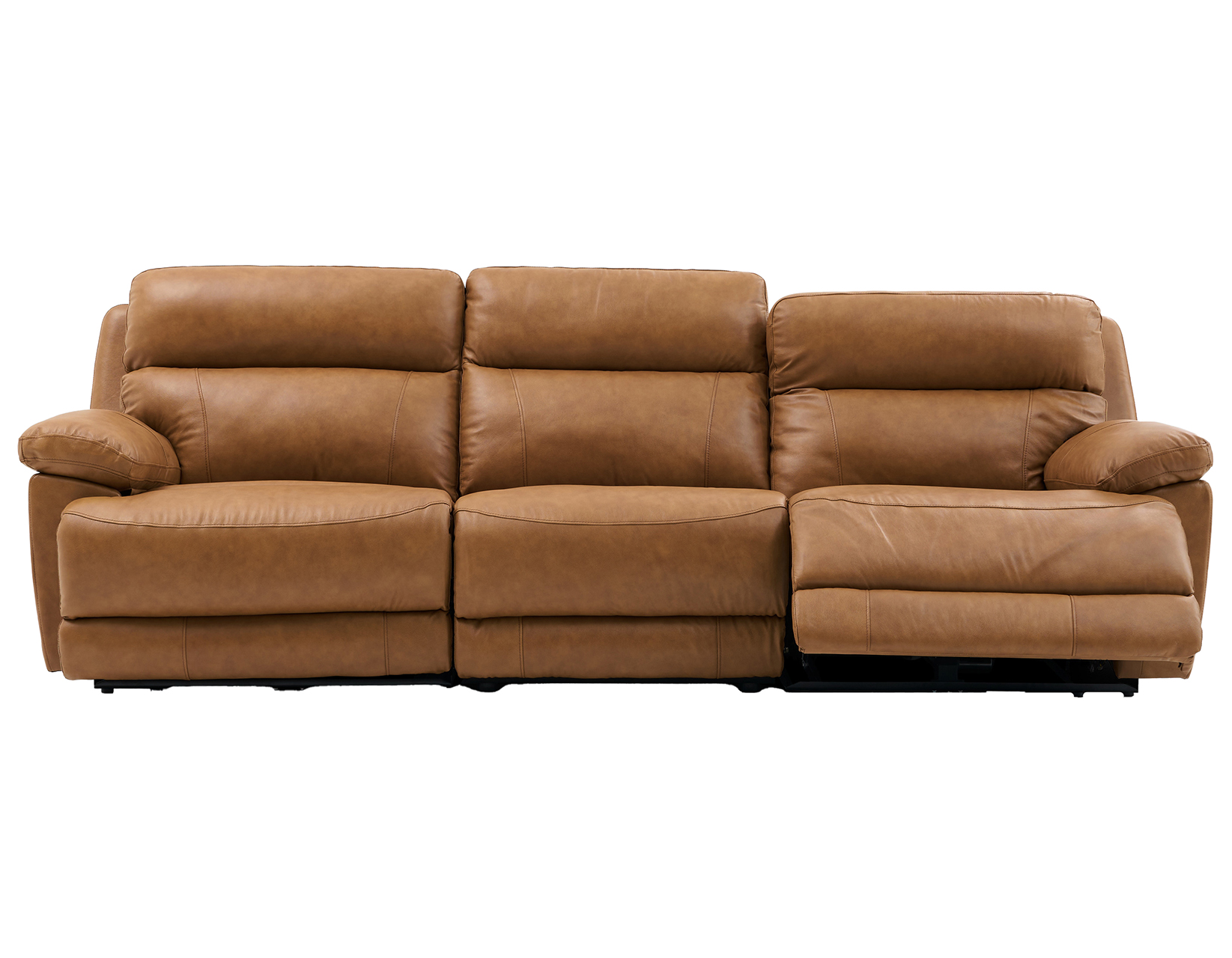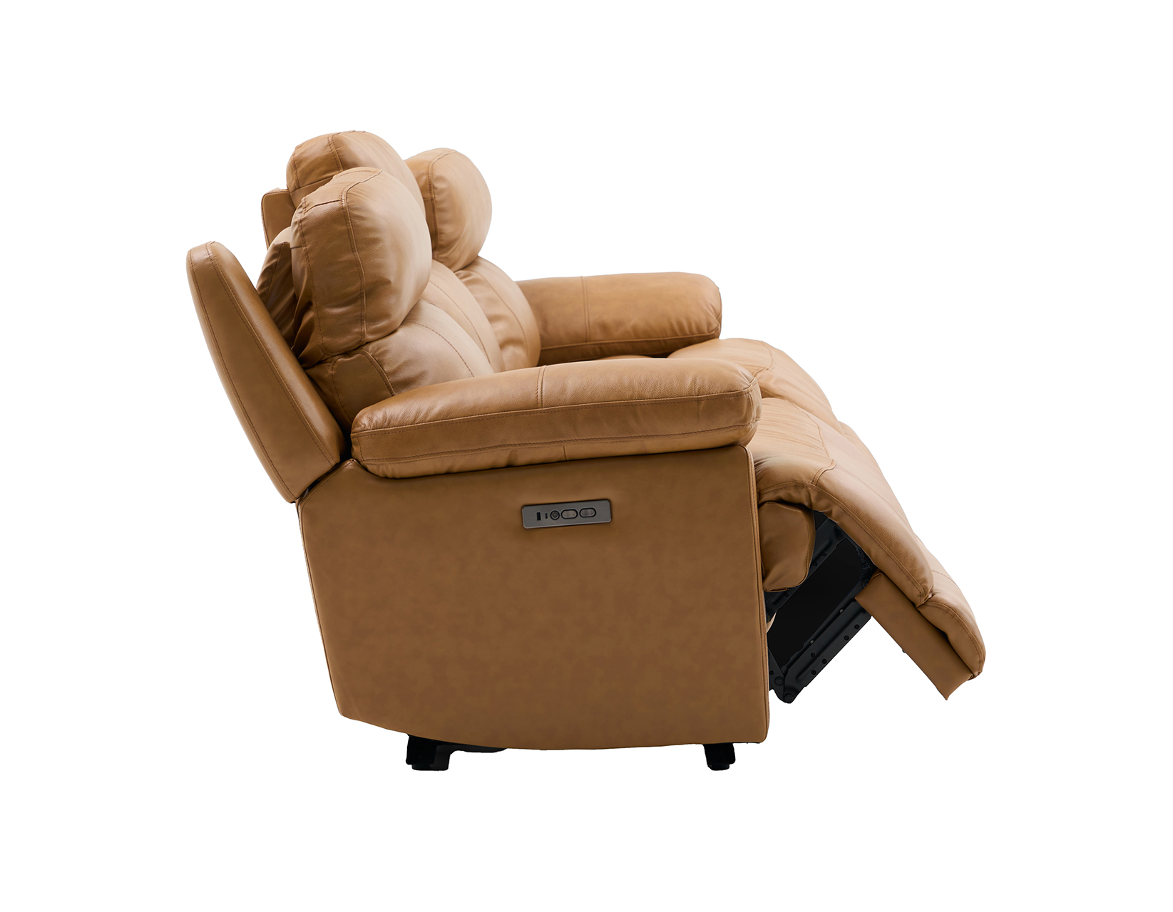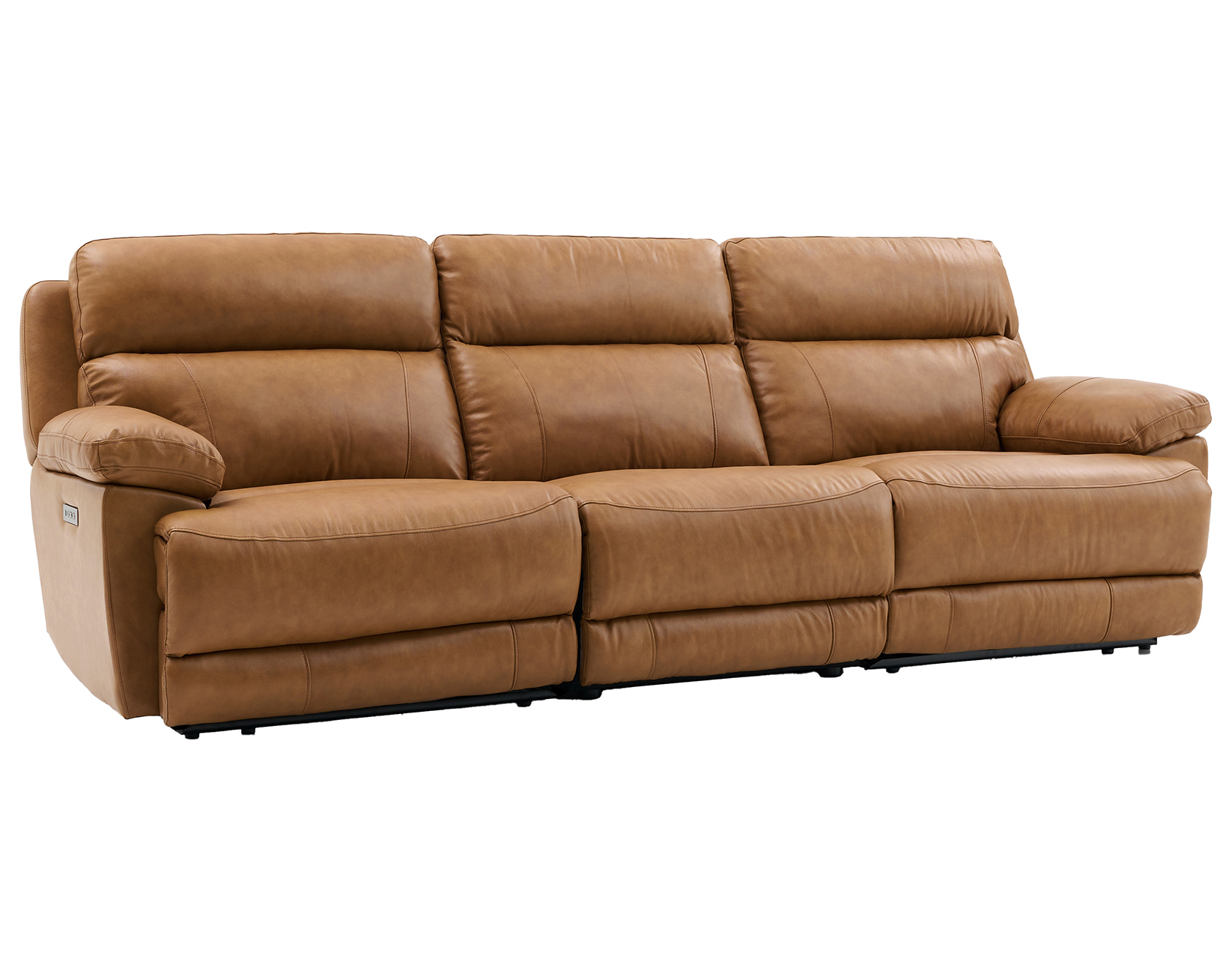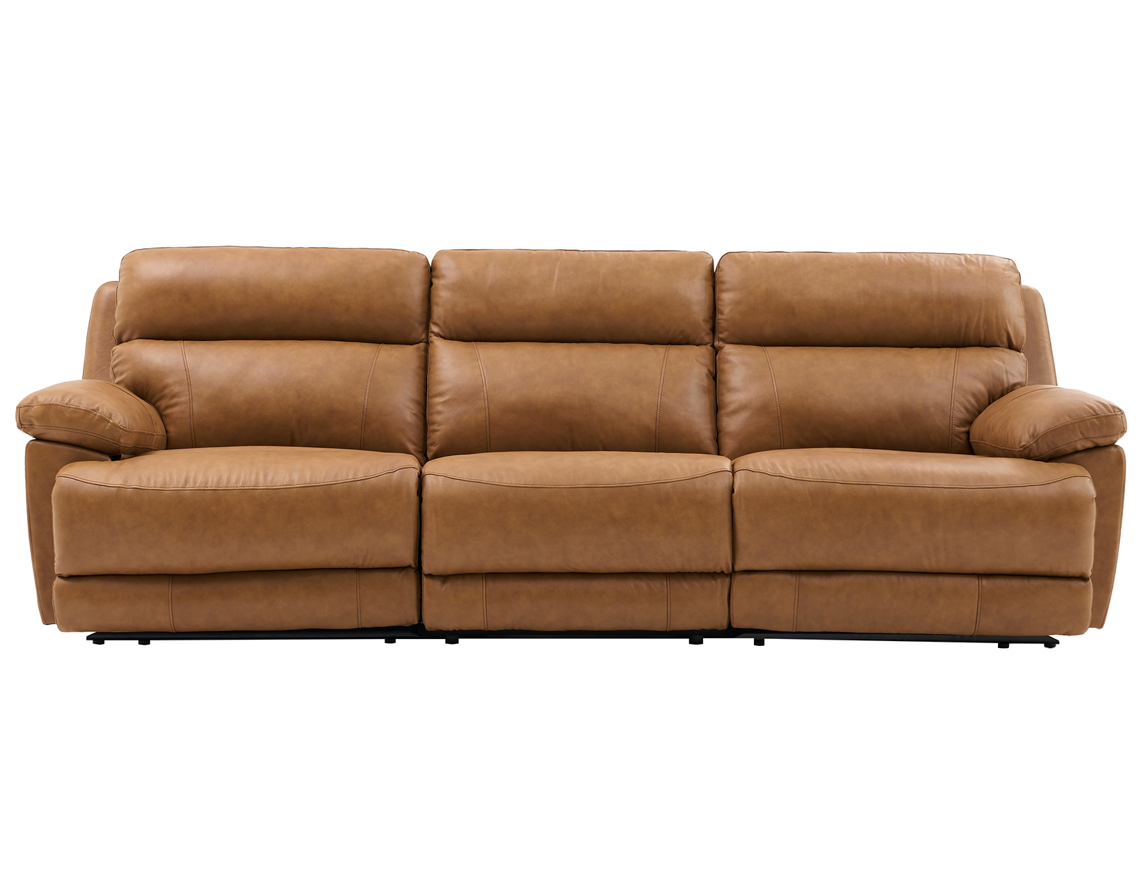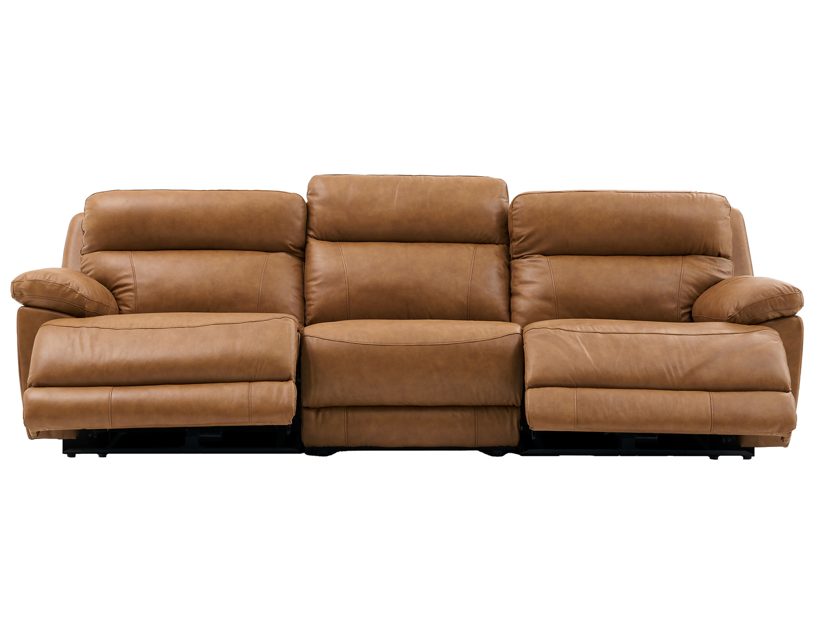 Relax in premium comfort with the Gatlin Leather Dual-Power Reclining 3-Piece Set, featuring a sofa, loveseat, and chair designed for elevated everyday lounging. Upholstered in rich butterscotch leather on all front-facing surfaces, with durable vegan leather on the sides and backs, this set blends luxury and practicality. Plush pillow-top arms and generously wide seating invite you to unwind, while dual-power reclining lets you effortlessly adjust headrests and footrests. Built-in USB charging, supportive bustle backs, 2.0 density foam, sinuous springs, and a sturdy engineered wood frame ensure lasting comfort and reliability.