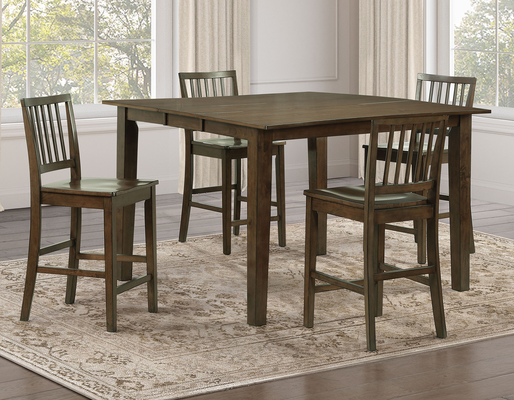 - The 5-piece set includes the Joplin 42-54″ Counter Dining Table with 12-inch leaf and four Joplin Counter Chairs. Each item also sold separately.