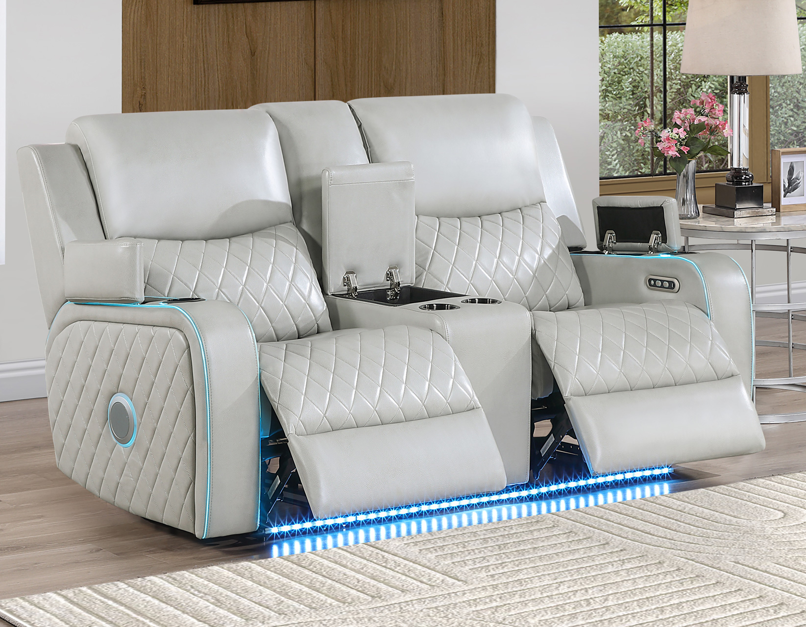 Luna Home Cinema Power Reclining Console Loveseat, Ice Vegan Leather