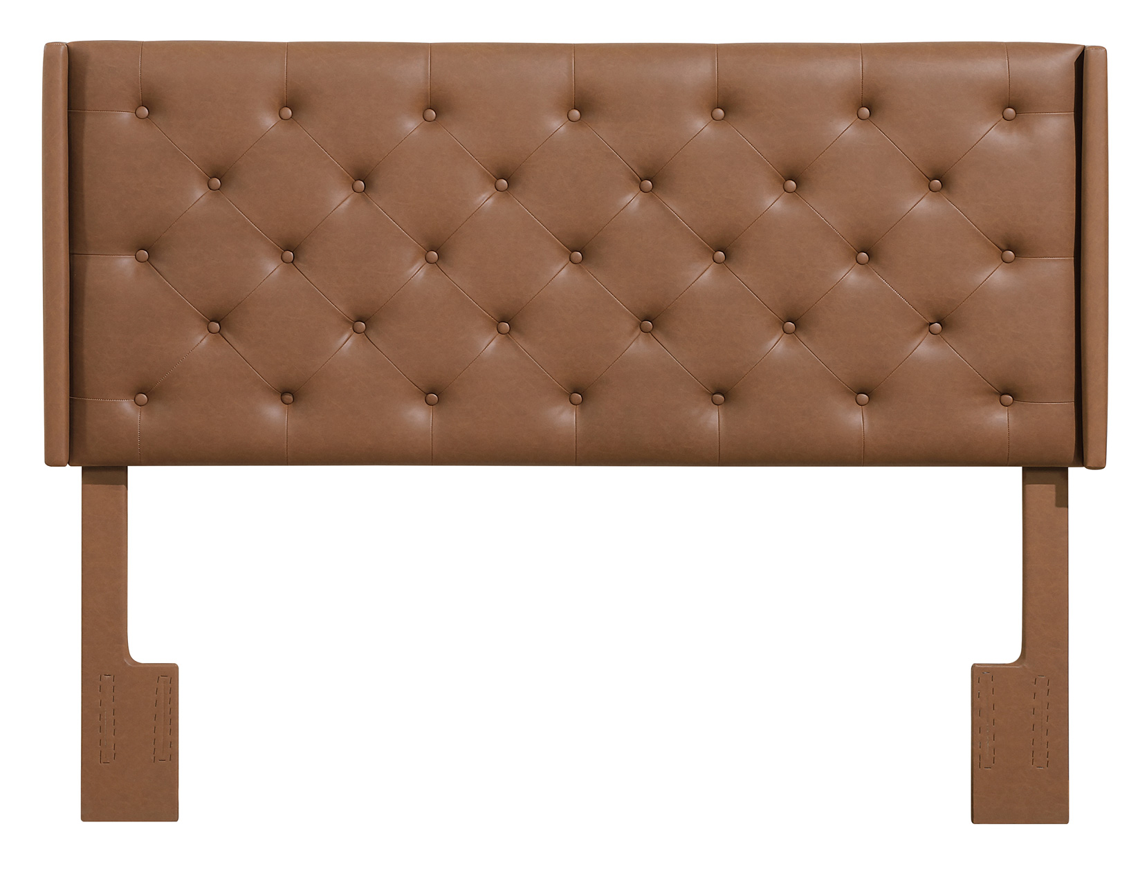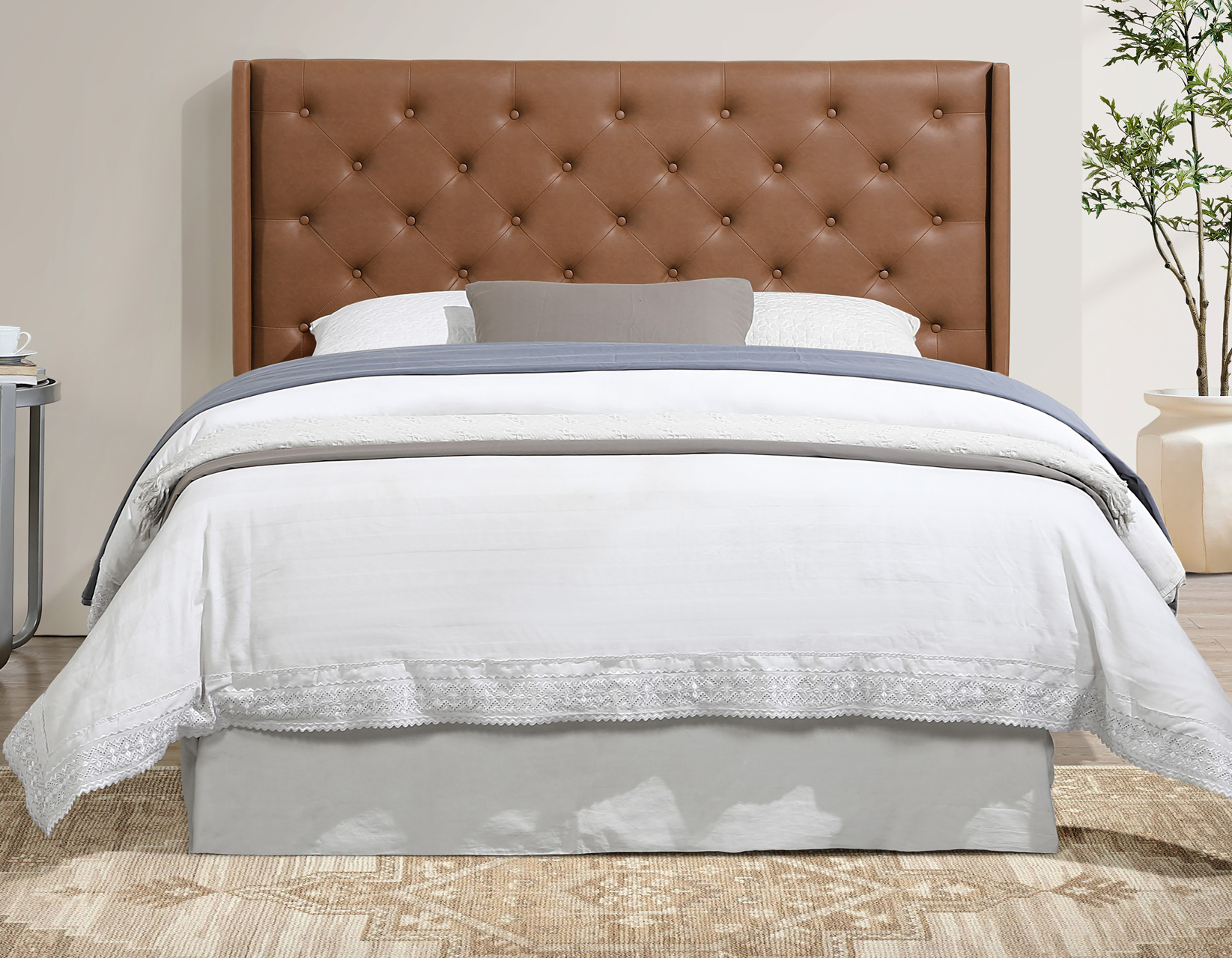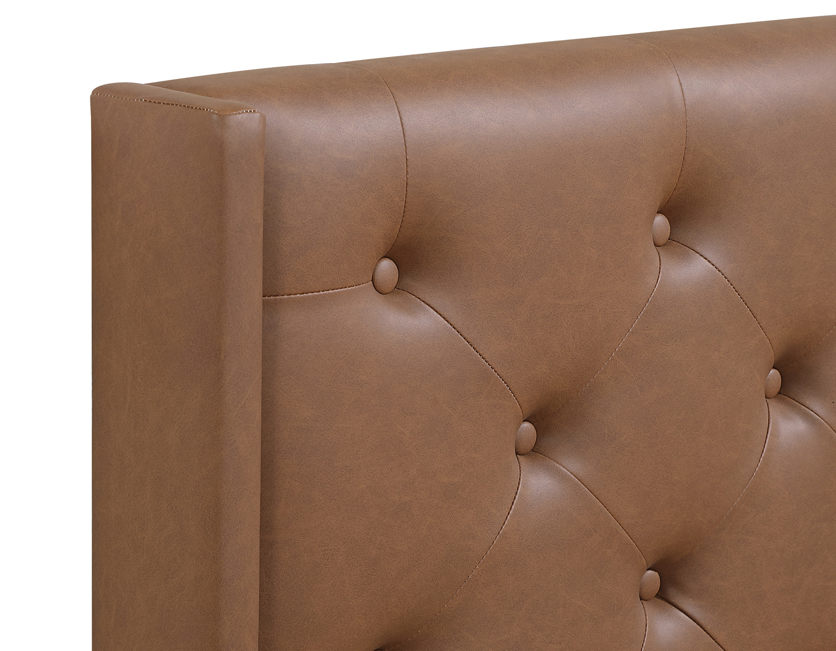 Soften your bedroom with the warm, inviting look of the Maria upholstered headboard in terra cotta vegan leather. Button tufting and soft foam padding add comfort and visual appeal for those nights spent leaned back reading, while the versatile design complements a variety of bedroom styles. Slotted for a full or queen bed, the Maria headboard is a great choice for a teen, young adult, or college room.