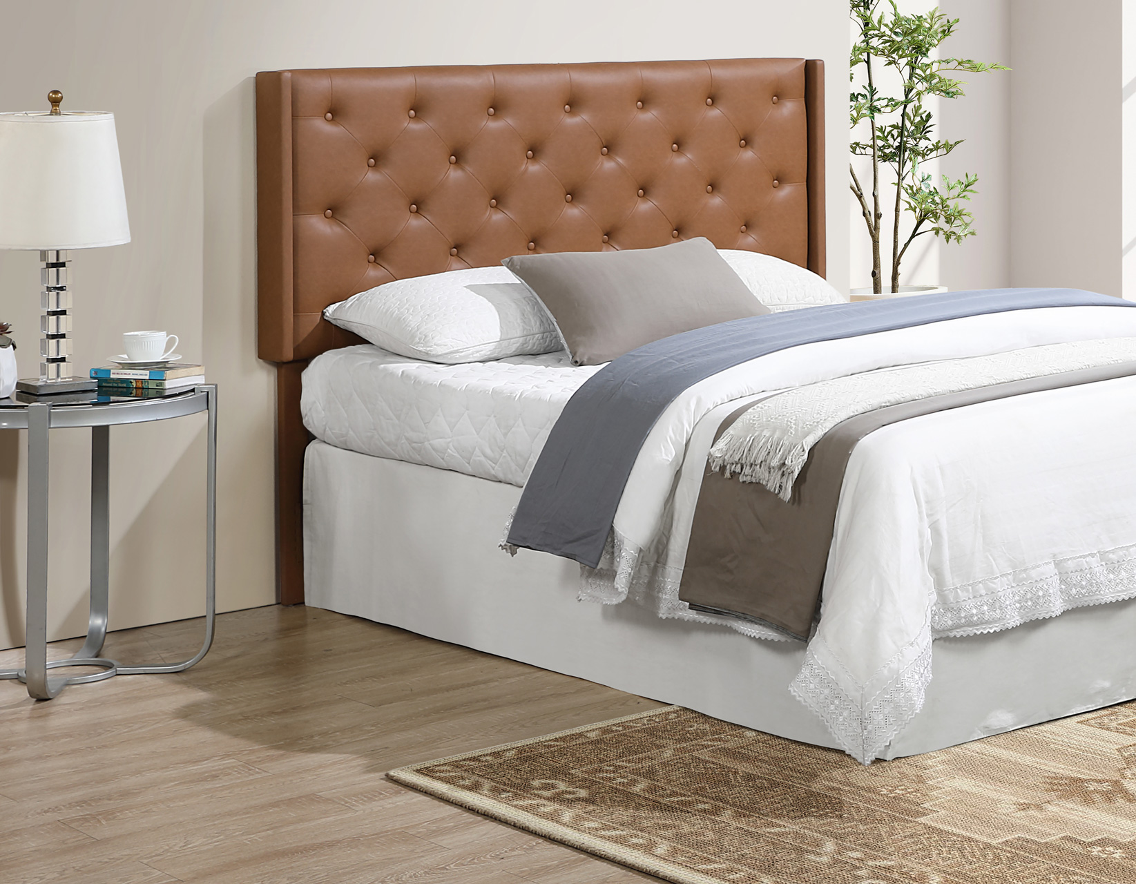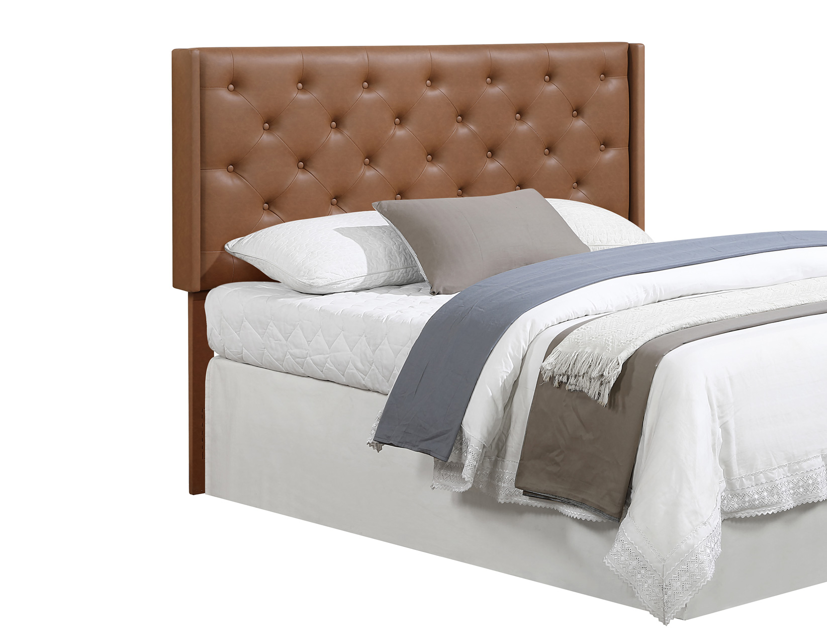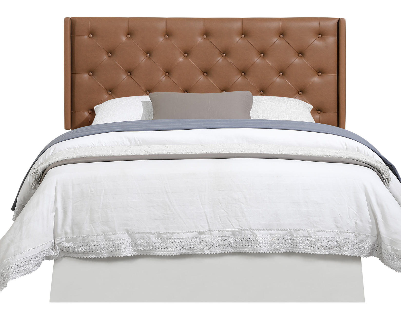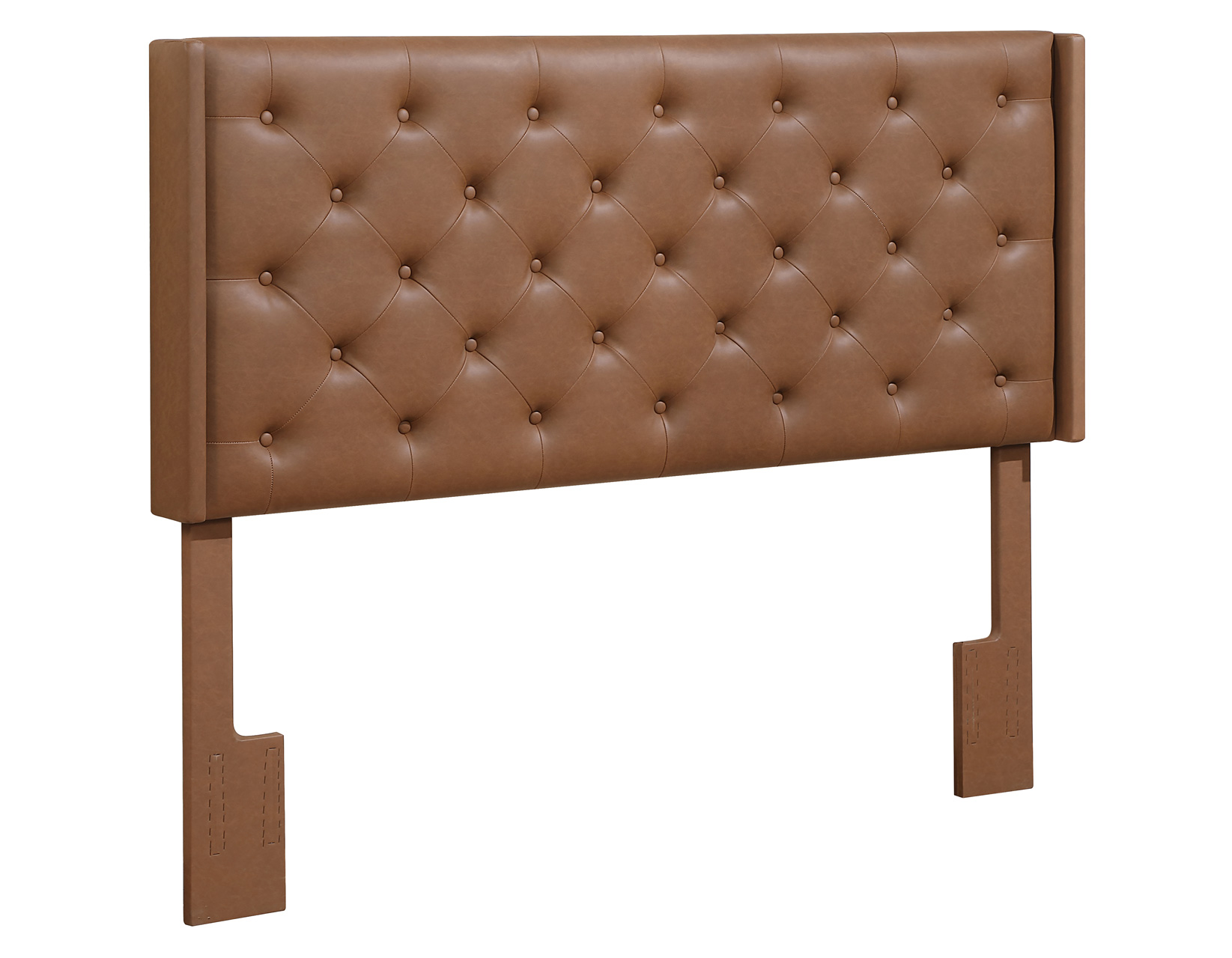 Soften your bedroom with the warm, inviting look of the Maria upholstered headboard in terra cotta vegan leather. Button tufting and soft foam padding add comfort and visual appeal for those nights spent leaned back reading, while the versatile design complements a variety of bedroom styles. Slotted for a full or queen bed, the Maria headboard is a great choice for a teen, young adult, or college room.