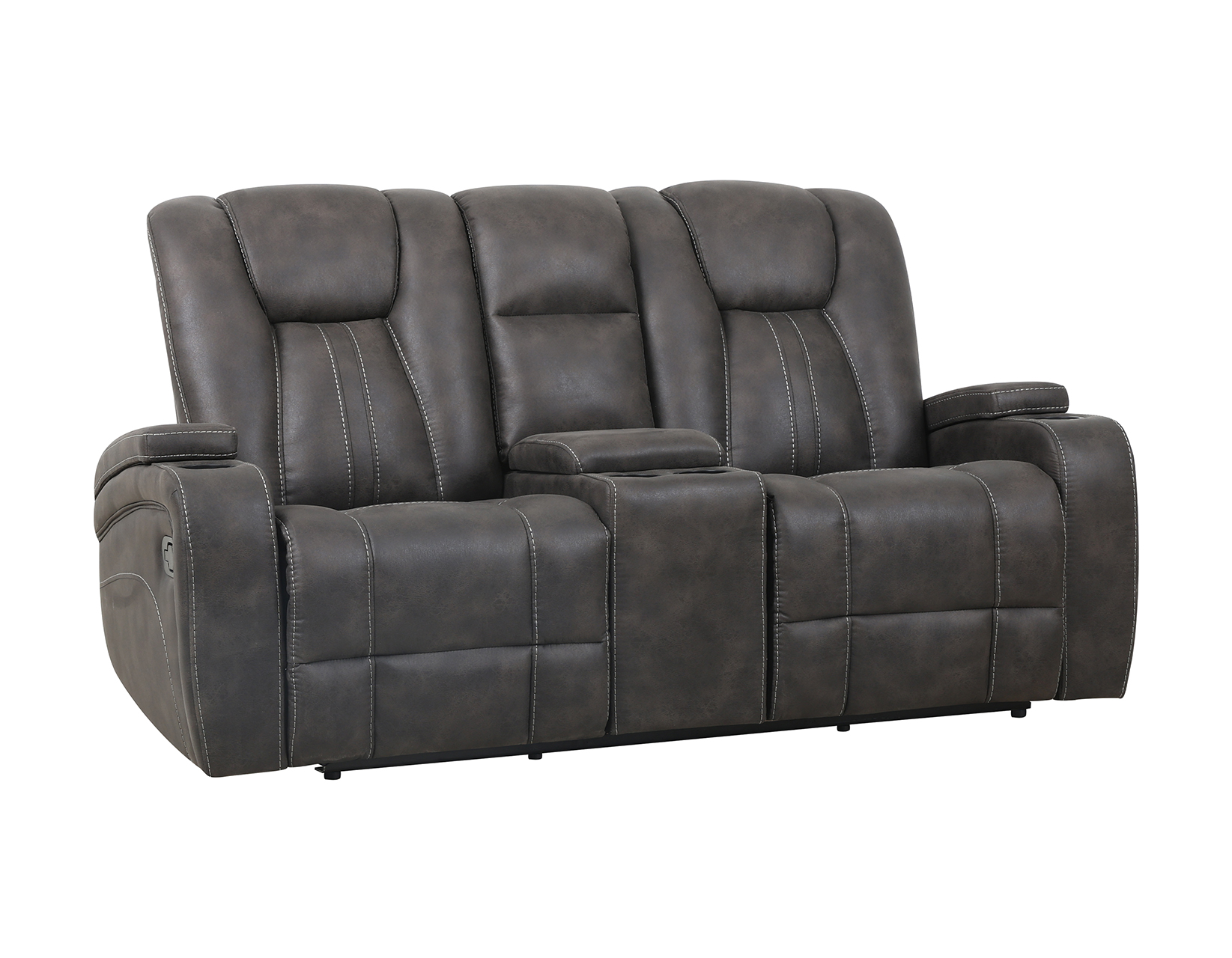 Upgrade your living room command center with the Marlow Manual Console Loveseat. Designed for shared comfort, dual manual recliners let you kick back with ease, while plush cushioning and detailed baseball stitching deliver standout style. The center console features two cupholders (with two more in the arms) and hidden storage—perfect for remotes, electronics, and everyday essentials. Wrapped in soft, easy-care faux suede, the Marlow blends modern design with cozy appeal, creating a central hub for relaxing, entertaining, and everything in between.