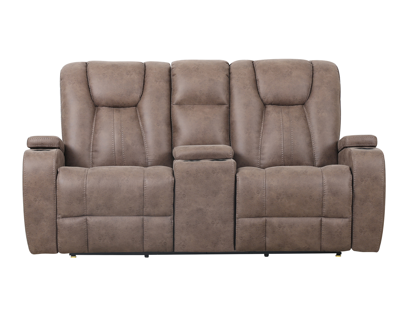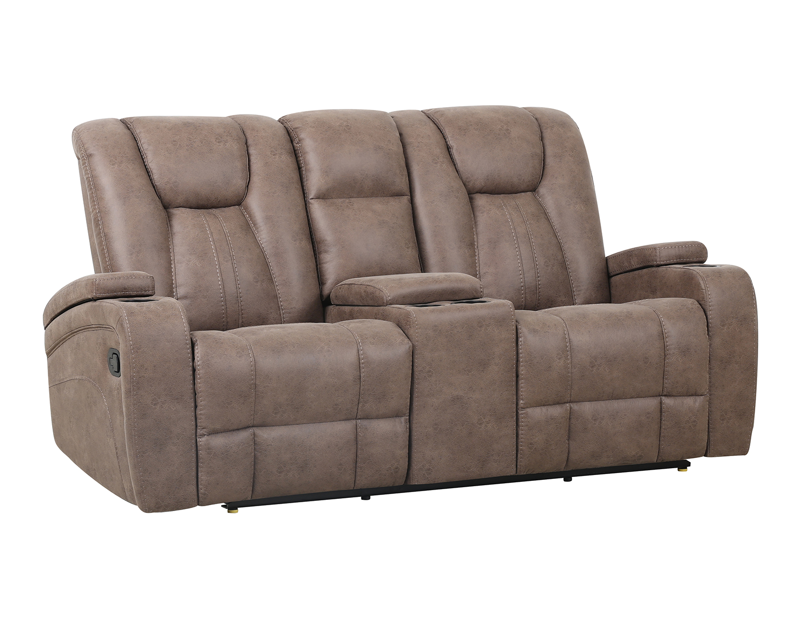 Upgrade your living room command center with the Marlow Manual Console Loveseat. Designed for shared comfort, dual manual recliners let you kick back with ease, while plush cushioning and detailed baseball stitching deliver standout style. The center console features two cupholders (with two more in the arms) and hidden storage—perfect for remotes, electronics, and everyday essentials. Wrapped in soft, easy-care faux suede, the Marlow blends modern design with cozy appeal, creating a central hub for relaxing, entertaining, and everything in between.