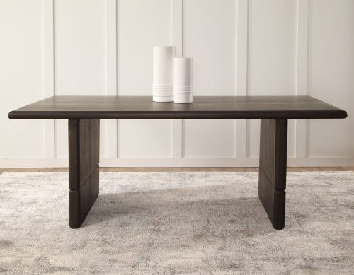 The 6-piece Norvell Dining Set combines clean lines, rich finishes, and artisan-crafted details for a timeless look. Featuring a 78″ solid wood table with a bullnose edge and notched double pedestal base, the set includes a matching bench and four comfortably cushioned side chairs. The dark espresso finish adds warmth and sophistication, while the versatile bench offers flexible seating for everyday meals or gatherings. With its balanced scale and transitional style, the Norvell set brings both function and elegance to any dining space.