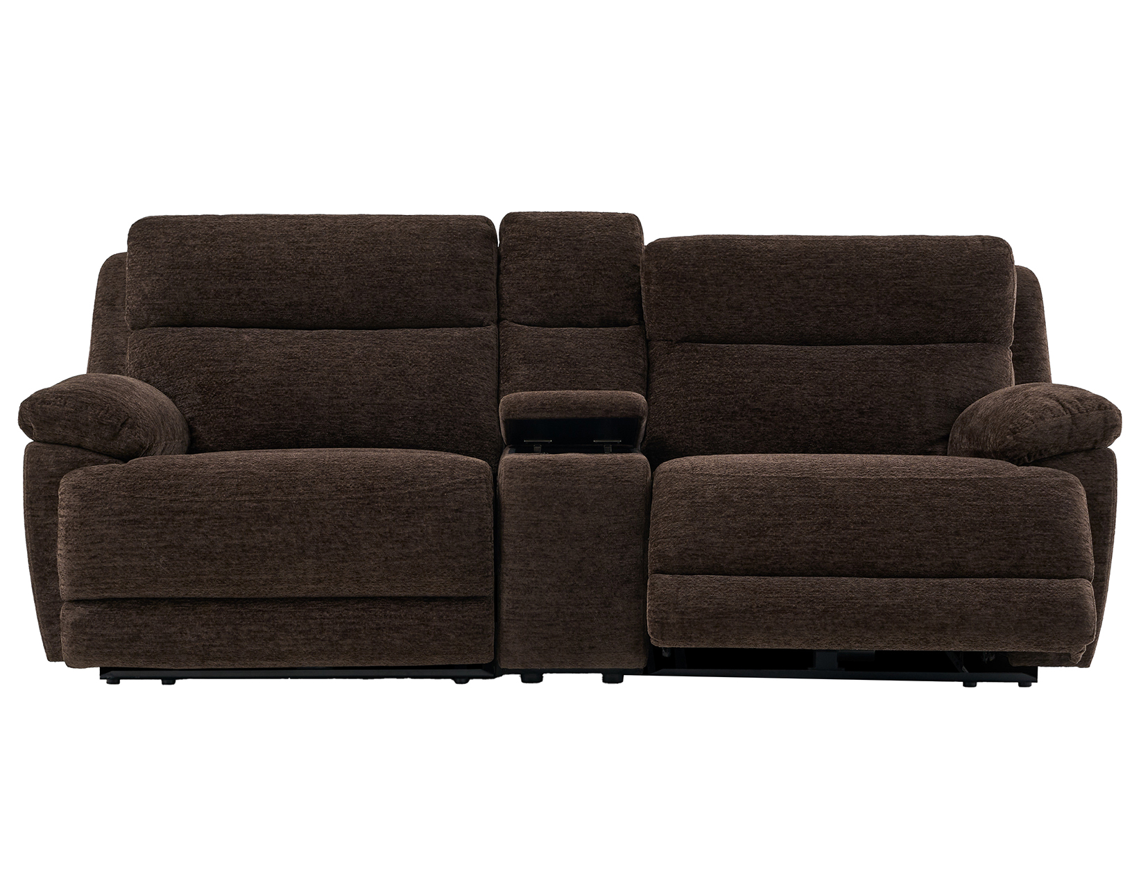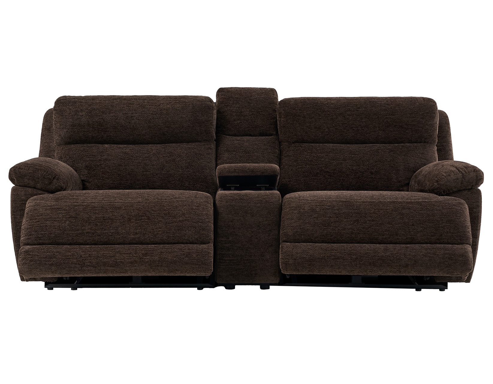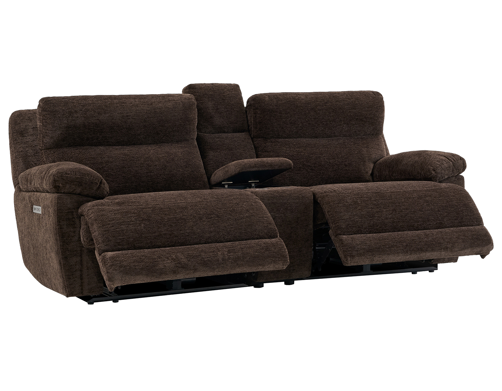 • Functional Storage Console: Includes two stainless steel cupholders and a lift-top storage compartment with USB-A/C ports and electrical outlets for convenient charging and storage.