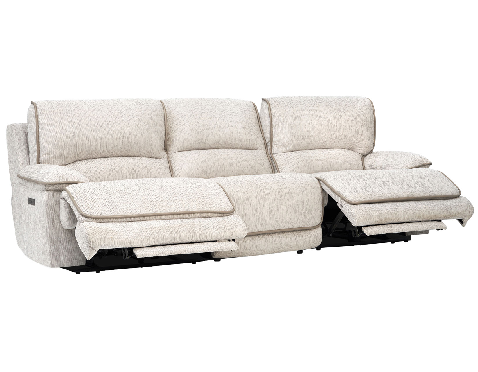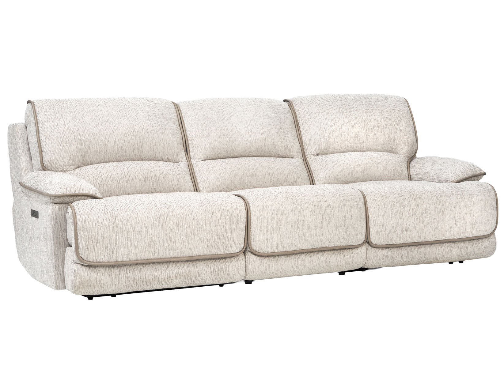 Relax in premium comfort with the Olsen 3-Piece Dual-Power Zero-Gravity Wallhugger Sofa, designed in a clean, transitional style that complements both modern and classic interiors. Upholstered in plush, low-pile 100% polyester fabric with refined vinyl welt accents, it offers lasting durability and softness. Dual-power controls allow independent headrest and footrest adjustment, while Zero-Gravity positioning elevates the legs for pressure-relieving comfort. The wallhugger design saves space, and the durable hardwood frame with steel seat box ensures long-term support. Modular components allow easy seating expansion.