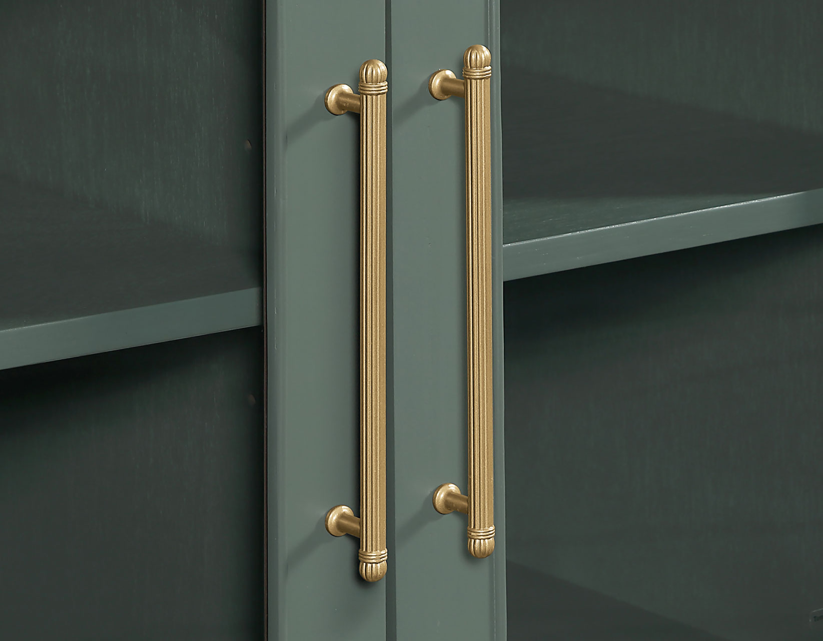 - Oversized satin brass hardware adds a luxurious touch of elegance and charm