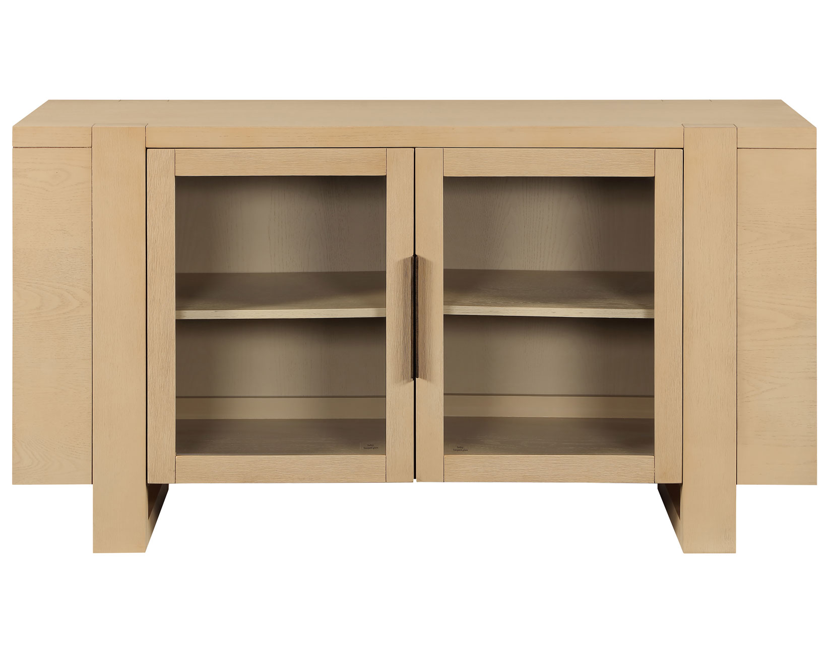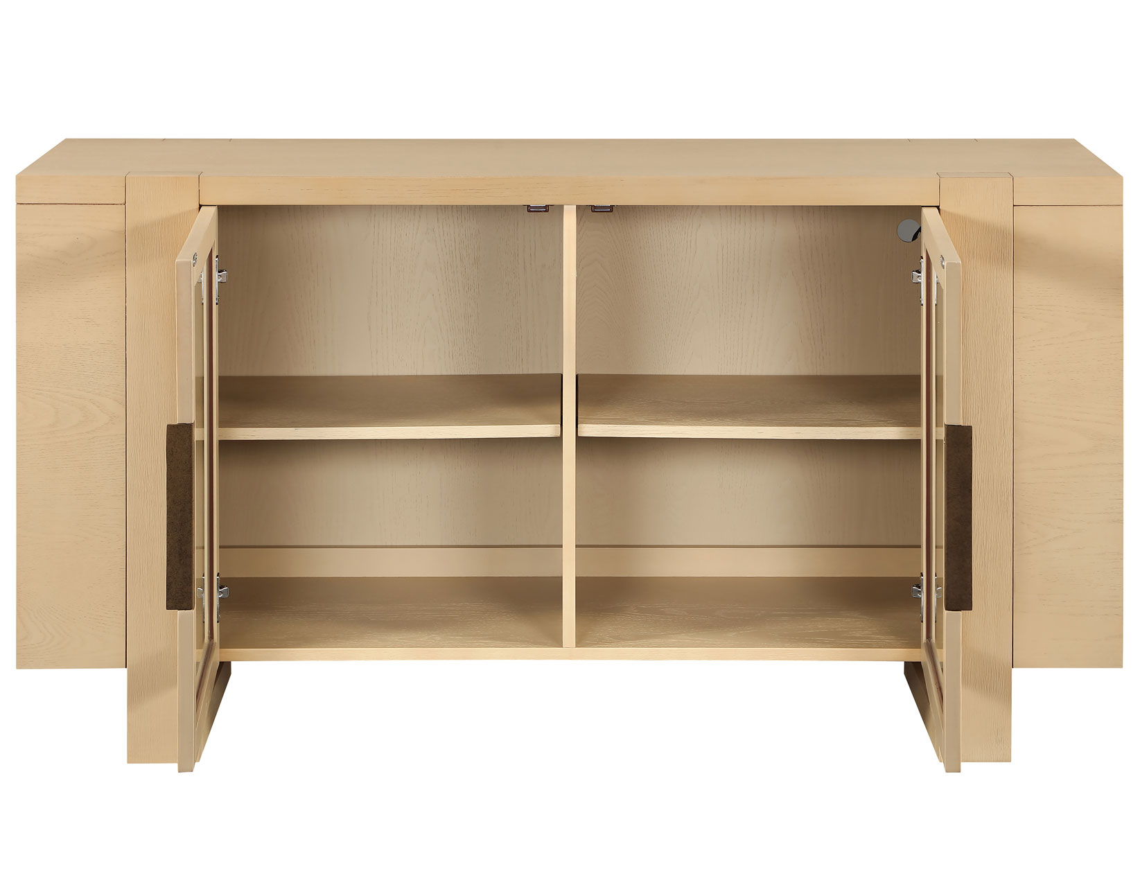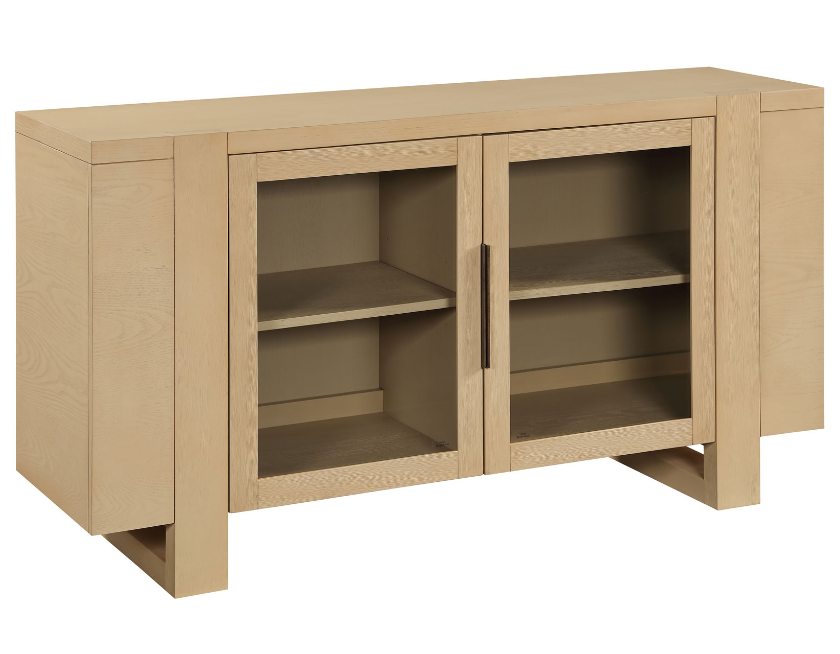 The Reid 60″ Server offers a modern take on a versatile dining and entertainment piece. Its light, airy sand finish over ash veneers brings a fresh, open feel to any room. Two glass doors provide display, storage, and easy remote access, while two adjustable interior shelves customize space for décor or electronics. Convenient charging is built in with two electric outlets plus USB-A and USB-C ports on the outer upper back, paired with a wire escape for organized cords. Clean lines complete the look overall.