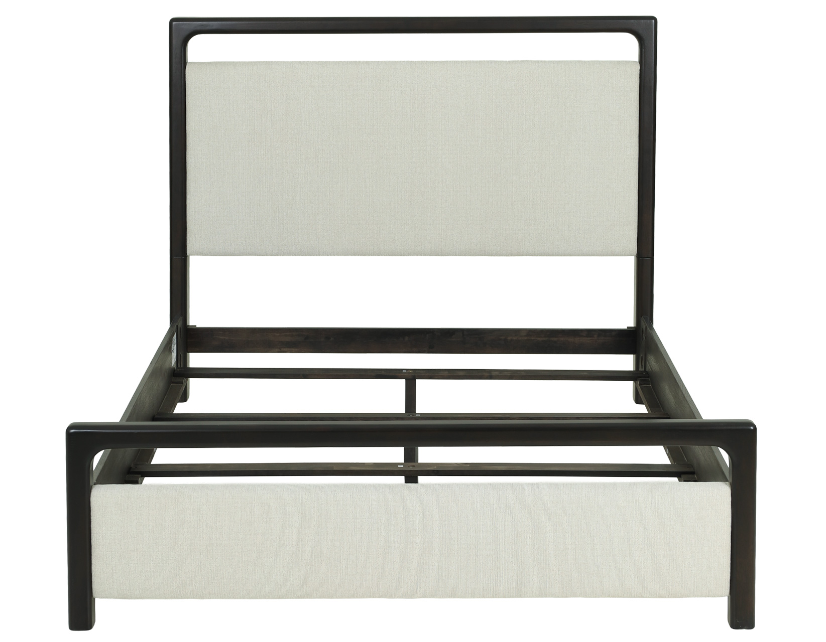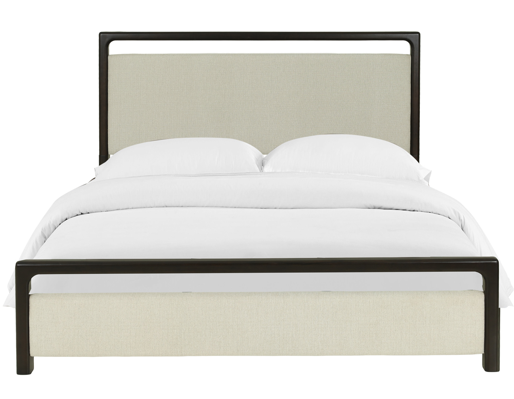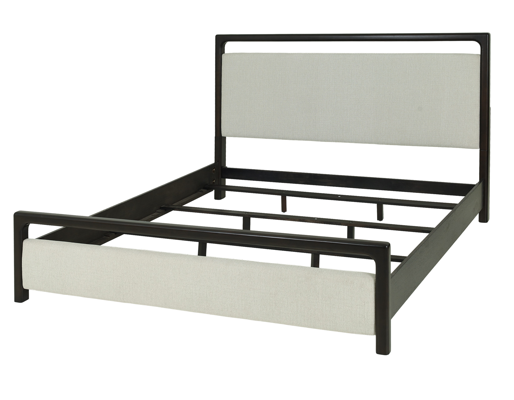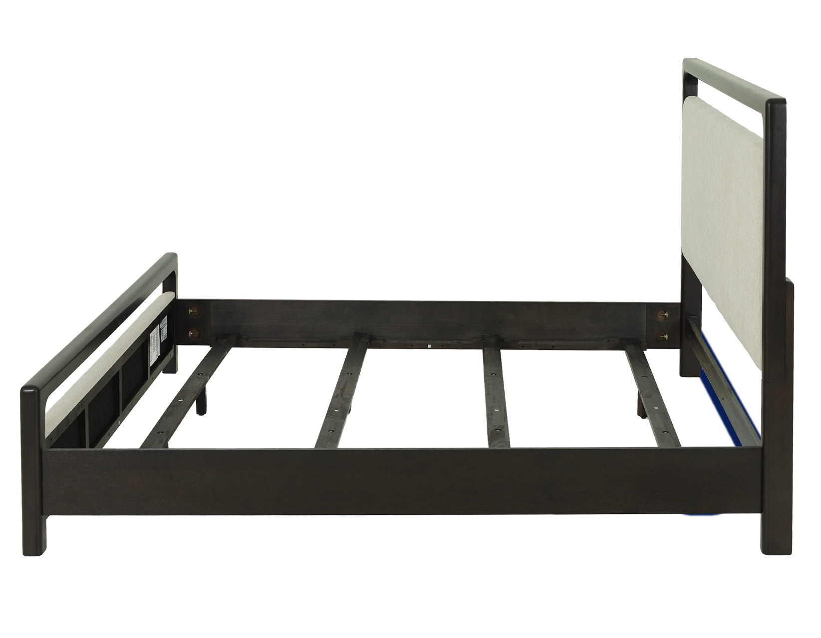 The Sigmund King Bed blends modern rustic styling with exceptional comfort. Crafted from solid Asian hardwoods, oak veneers, and engineered woods, it features a rich sable stain paired with a cream polyester-upholstered headboard insert—creating a cozy spot for reading or watching TV. Softly rounded corners, smooth edges, and the signature Sigmund open-space design complete the look, bringing warmth and contemporary character to any bedroom.