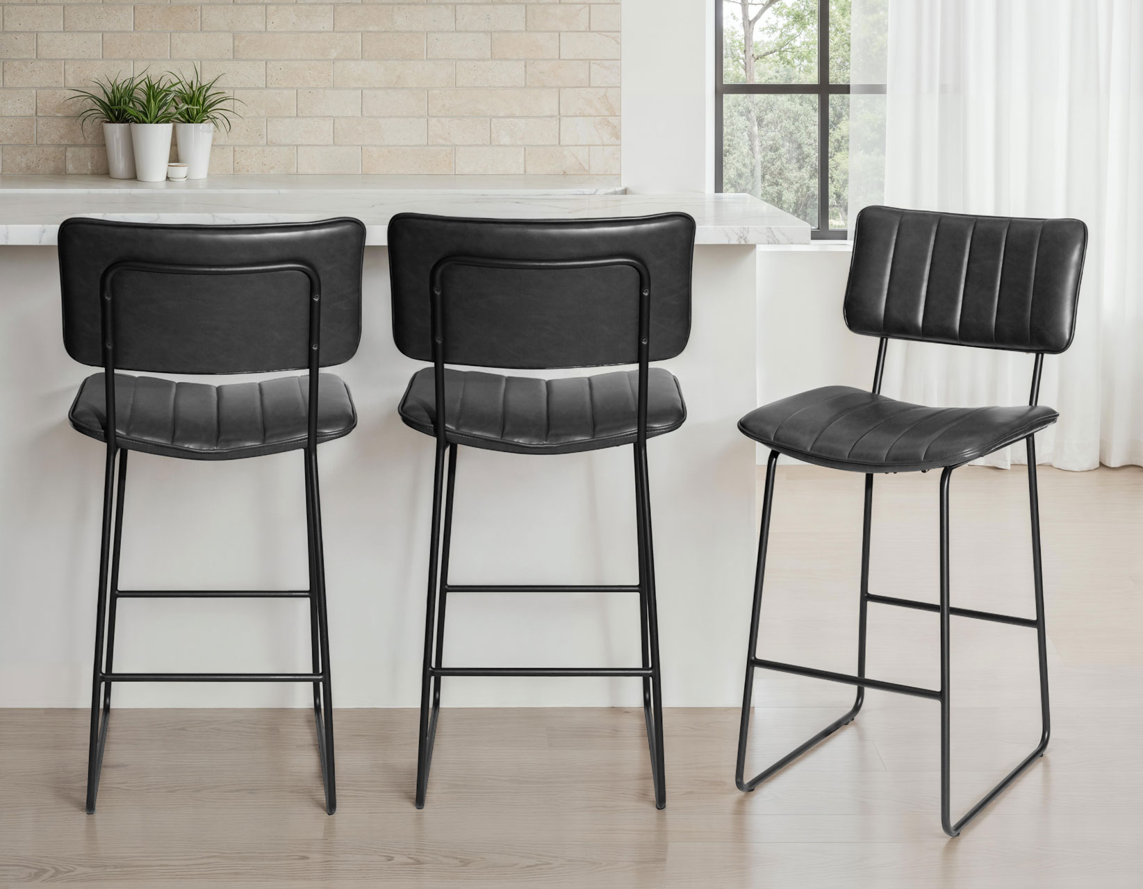 Mid-Century Modern style in a mixed-media Bar Stool, Tribeca makes every counter experience more enjoyable and stylish. A gently shaped seat and back are channeled for a retro touch that also makes the seat extra comfortable. Heavy duty metal frame ensures a stable base that is reinforced with a footrest that also makes a comfortable resting place for your feet. The perfect height for 42″ high counters.