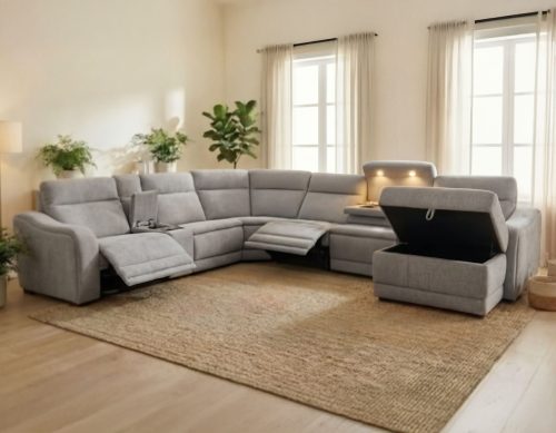 Olsen 6-Piece Sectional, Dual-Power Zero-Gravity Reclining, Silver